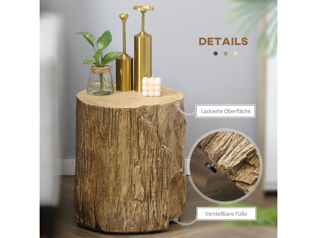 Noční stolek HOMCOM ve vzhledu pařezu se 4 nastavitelnými nohami, voděodolný 37x37x43 cm do obývacího pokoje a ložnice | Aosom.de