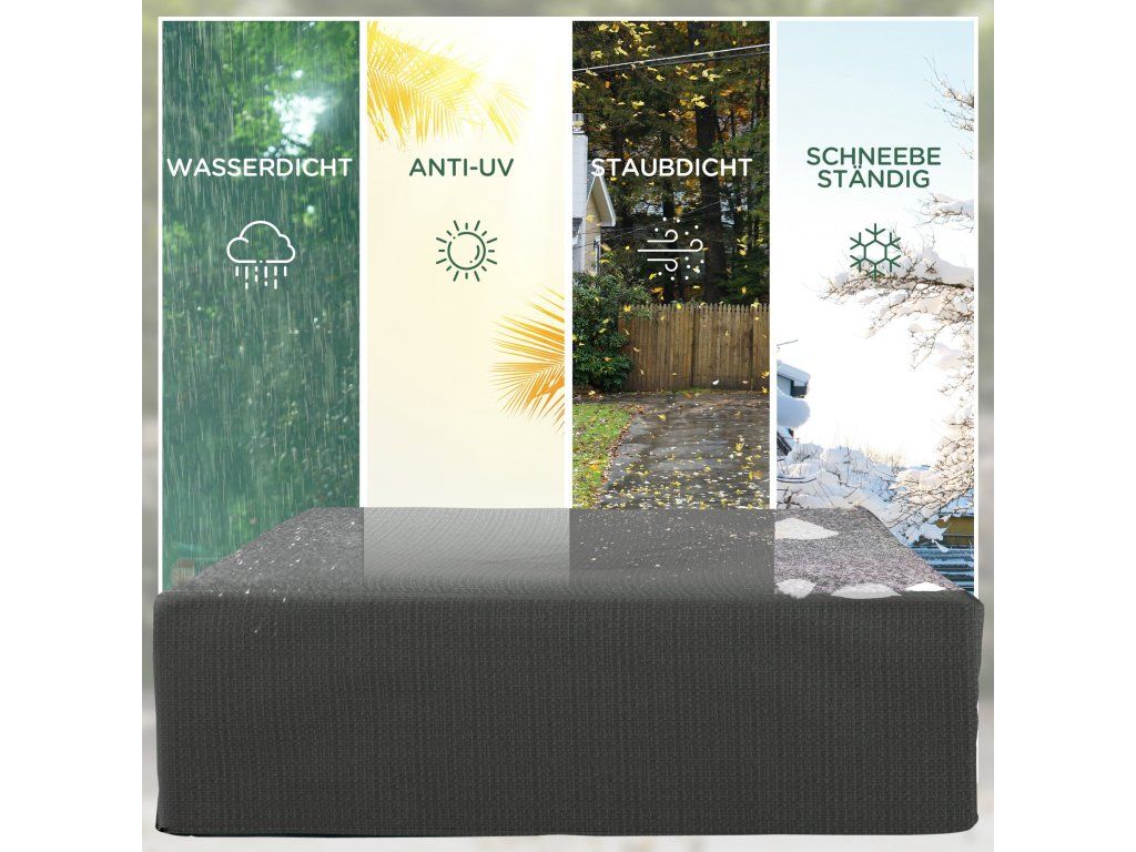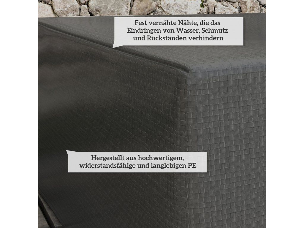 - Robustní materiál: Obal na zahradní nábytek z polyethylenu o tloušťce 100 g/m² s voděodolnou vrstvou chrání váš zahradní nábytek před deštěm, sněhem, nečistotami, prachem a blednutím UV záření.