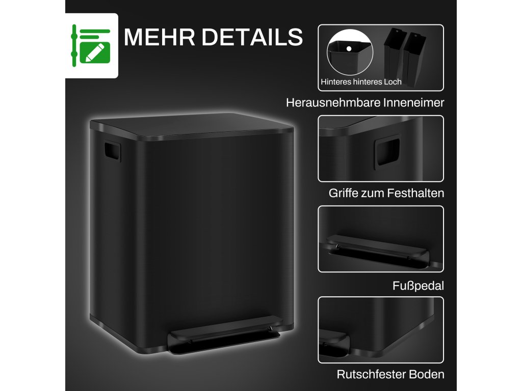 - Dvojí použití pro třídění odpadu: Díky dvěma přihrádkám o objemu 25 l umožňuje tento odpadkový koš snadné třídění recyklovatelného materiálu a zbytkového odpadu. Přihrádky na deodorant odolné proti zápachu pomáhají eliminovat nepříjemné pachy (deodorant není součástí balení).