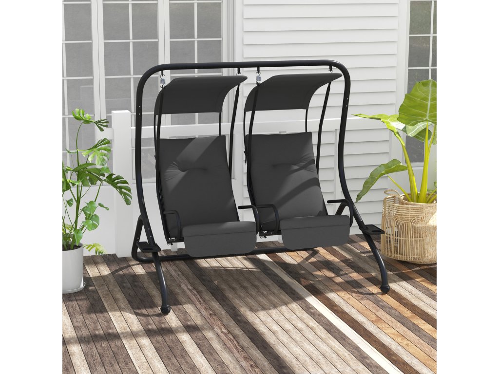 Outsunny 2místná zahradní houpačka Hollywood se sluneční stříškou šedá 170 x 136 x 170 cm, robustní ocelová konstrukce pro zahradu a terasu |