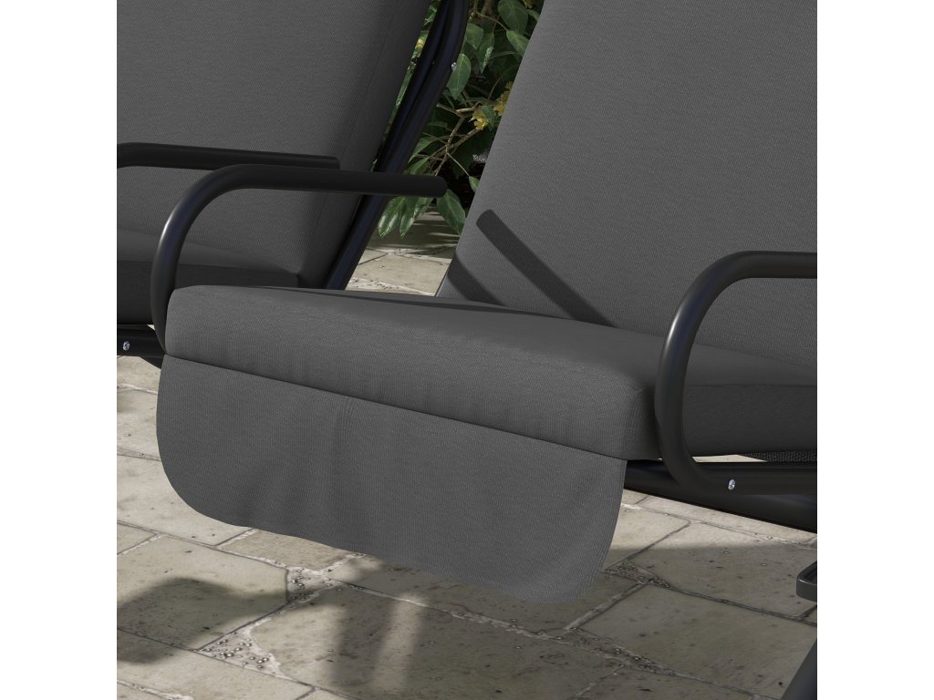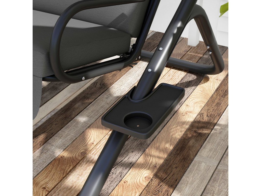 Užijte si romantické chvíle v přírodě. Se zahradní houpačkou Outsunny pro dospělé budou letní dny ještě krásnější. Dvoumístná houpačka je pohodlně a měkce polstrovaná a má odolný polyesterový potah. Dvě pohodlná houpací lehátka jsou rovněž potažena, takže můžete odpočívat ve stínu. Ocelový rám je velmi robustní a odolá povětrnostním vlivům. Skleničku vína nebo osvěžující studený nápoj tak budete mít vždy po ruce a můžete si užívat nezapomenutelné chvíle.