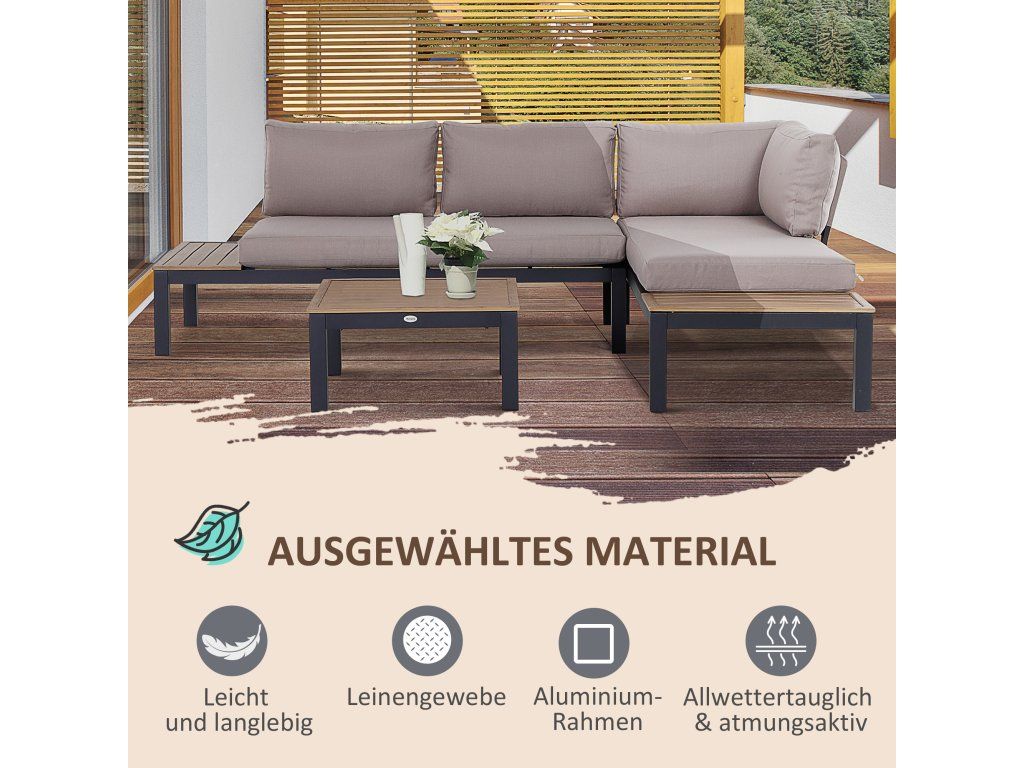 Outsunny 3dílná sada zahradního nábytku s pohovkou a polštáři, boční stolek, hliník, 164x74x69 cm, ideální pro venkovní prostory | Aosom.de