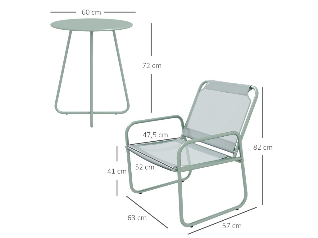 Outsunny 3dílný bistro set balkonový nábytek s 1 stolem a 2 židlemi, zahradní sedací souprava ze síťoviny v zelené barvě pro zahradu a terasu | Aosom.de