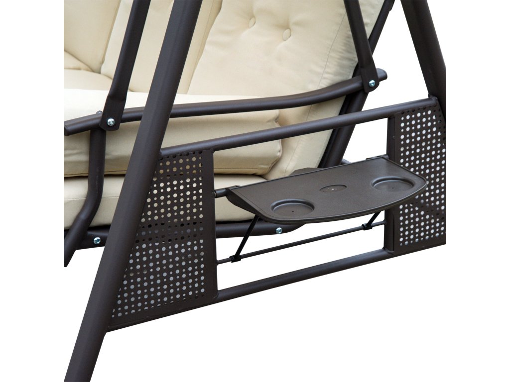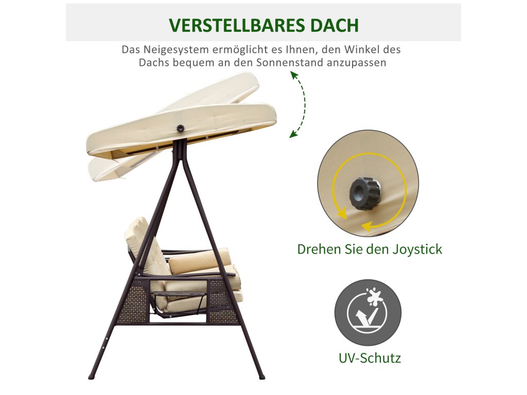 Outsunny 3místná hollywoodská houpačka zahradní houpačka se sluneční stříškou polštáře kov polyester béžová+hnědá 120 x 208 x 172 cm | Aosom