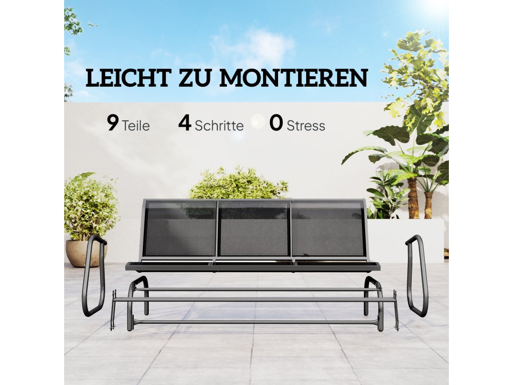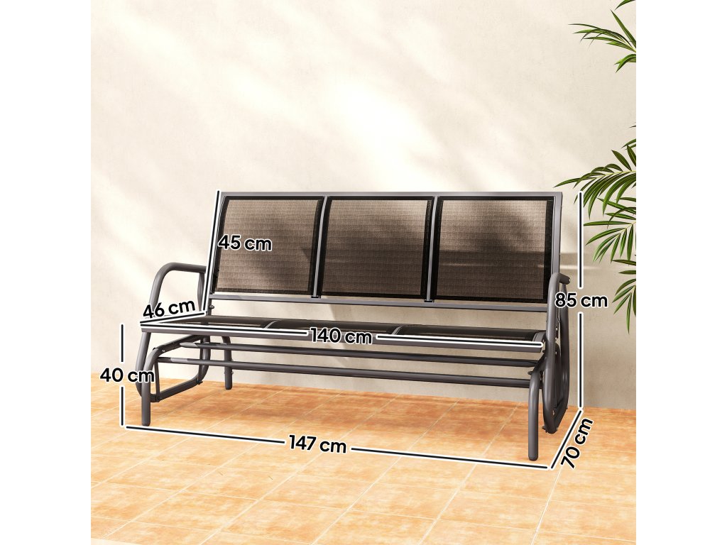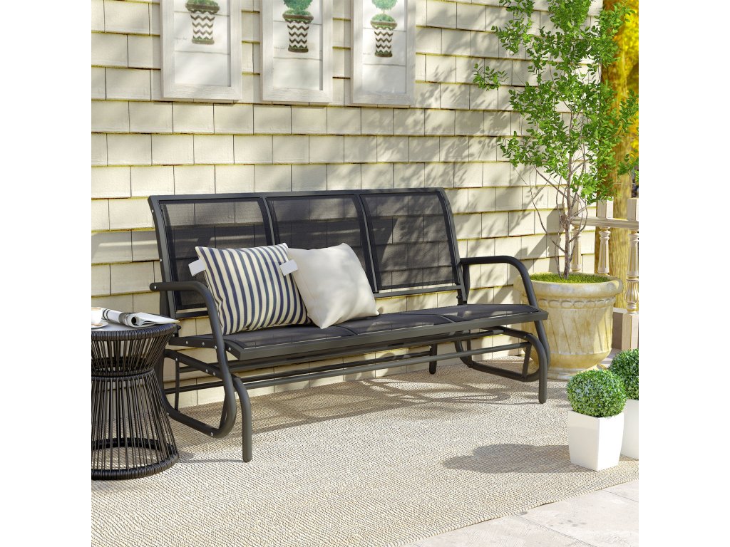 Outsunny 3místné houpací křeslo Robustní zahradní lavice jako zahradní houpačka, kovová, odolná proti povětrnostním vlivům, černá, 151x75x85cm| Aosom