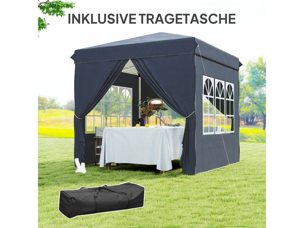 Altán Outsunny s bočními stěnami se rychle postaví a díky praktické přenosné tašce se snadno přepravuje a skladuje. Tkanina UPF50+ Oxford skládacího altánu poskytuje vynikající ochranu proti 98 % UV záření a integrované odtokové otvory zabraňují vnikání vody. Tento párty stan je ideální pro 4-6 osob a nabízí optimální ochranu za slunečných dnů.
