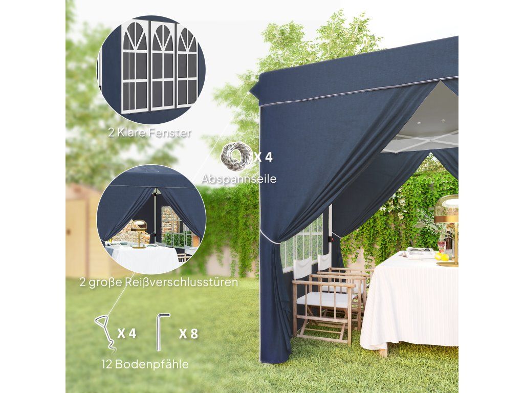 Outsunny altán 2,5x2,5 m, vodoodpudivý stabilní zimní pop-up skládací altán, UV ochrana 50+, skládací párty stan zahradní stan se 4 bočními panely taška zahradní altán pro kempování na zahradě, tmavě modrý