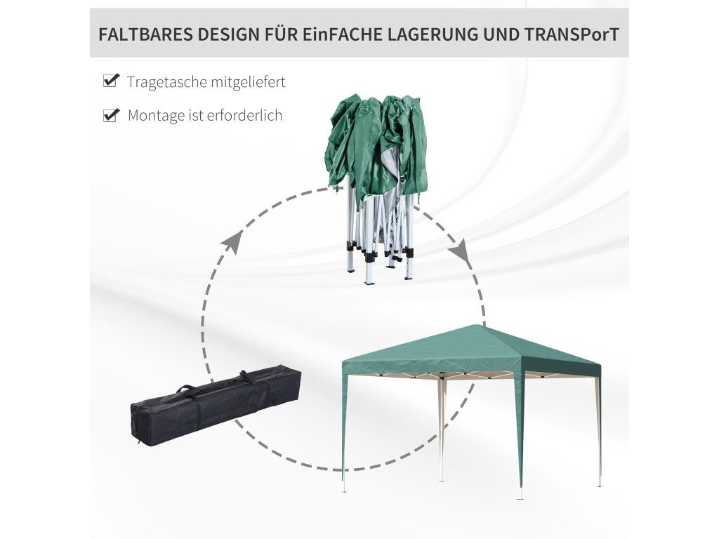 Outsunny altán 2,95x2,95 m pop-up skládací altán UV ochrana skládací ocel Oxford zelená pro zahradní párty a akce |