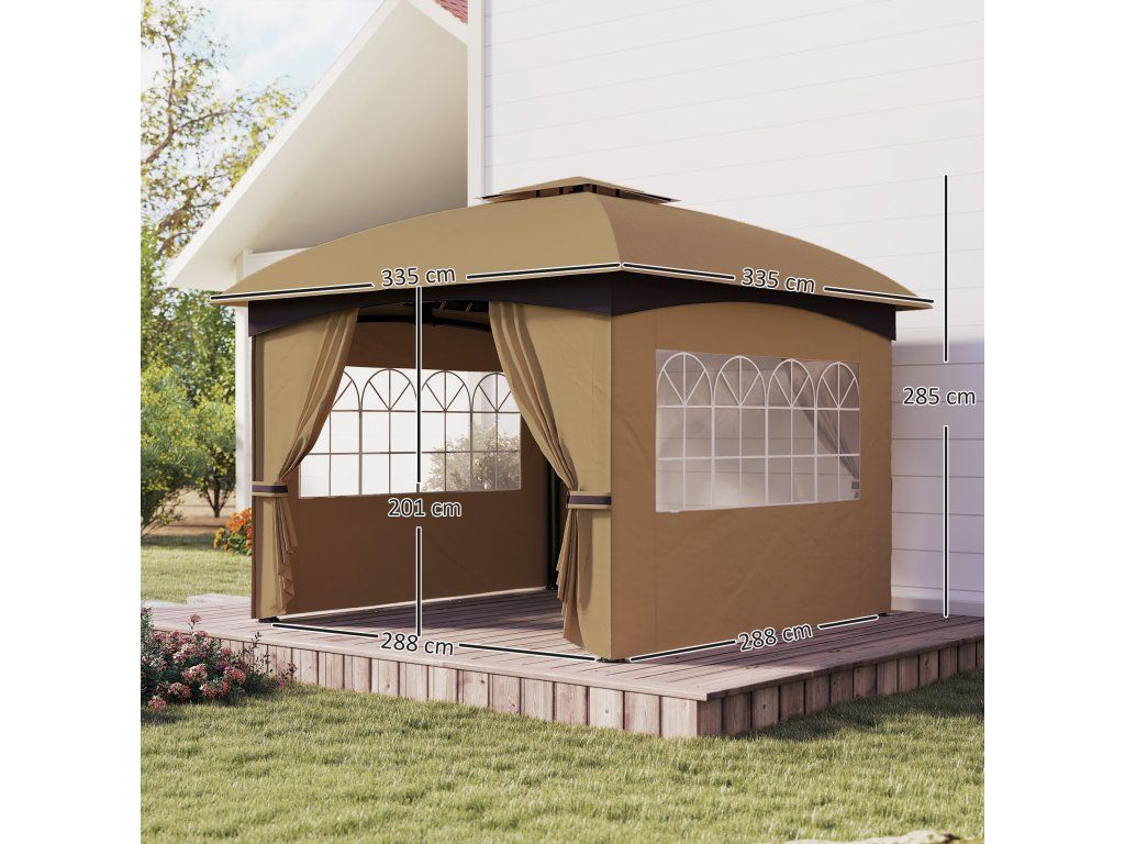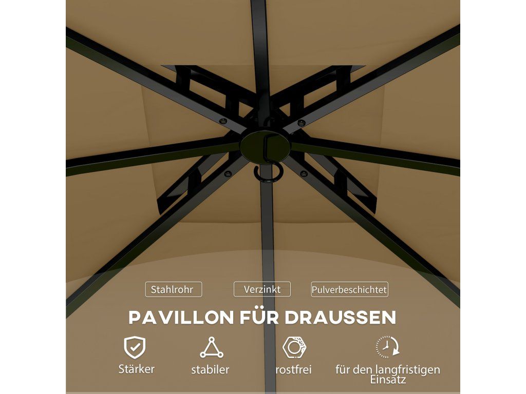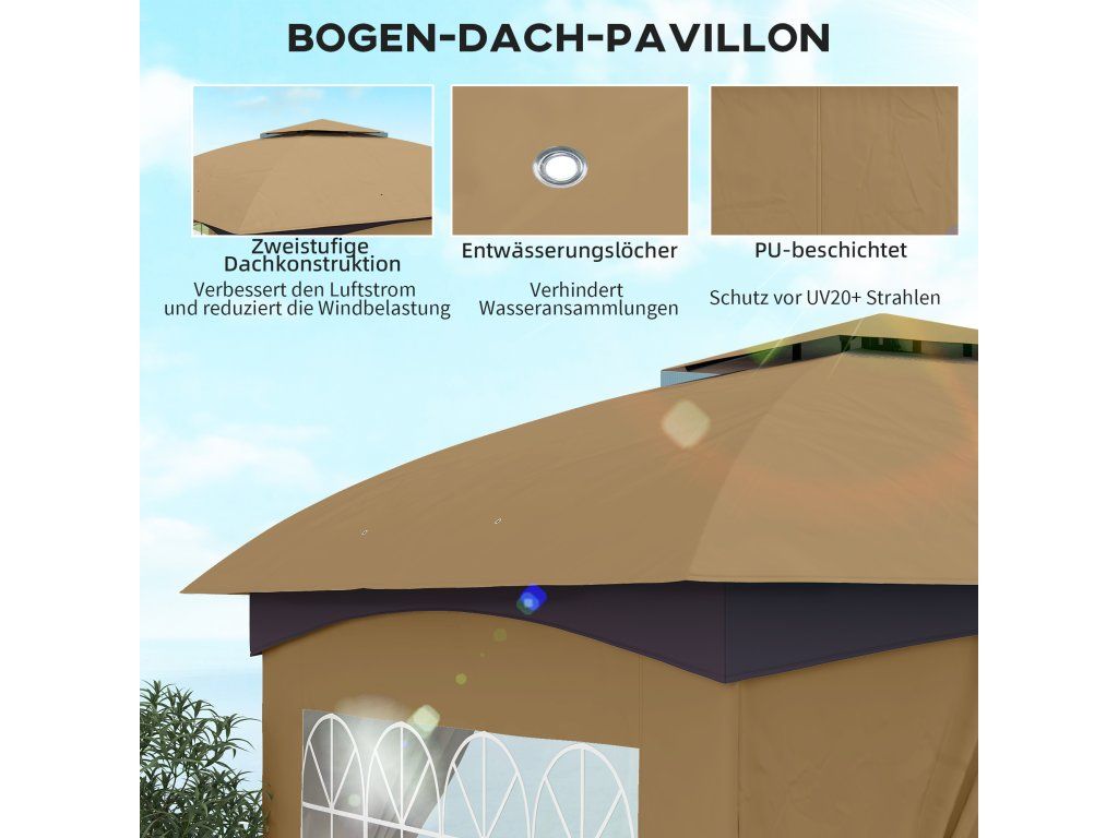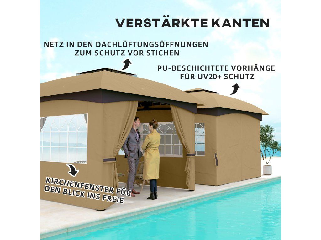 Outsunny altán cca 3,4x3,4 m vodoodpudivý zahradní altán se 4 bočními díly, dvojitá střecha, párty stan s UV ochranou zahradní stan s pozinkovaným kovovým rámem, pro zahradu Beige