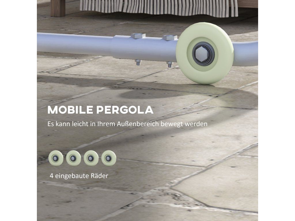 - Mobilní zahradní altán: Snadno se přemisťuje díky zabudovaným kolečkům, což usnadňuje pohyb po venkovním prostoru a umožňuje přizpůsobit stín nebo sluneční světlo podle potřeby