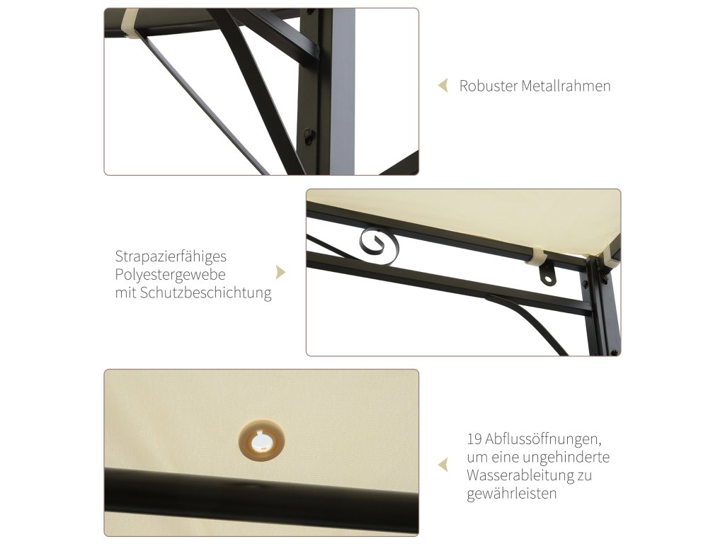 Vytvořte si elegantní místo k odpočinku a společenskému posezení s tímto skvělým altánem s laťkovou střechou od společnosti Outsunny. Kryt terasy poskytuje bezpečnou ochranu před sluncem a mírným deštěm. Boční nástavec střechy lze navíc v případě potřeby odklopit a přiklopit, aby poskytl více stínu nebo lepší ochranu před větrem. Robustní ocelový rám lze v případě potřeby připevnit také na zeď - ideální na terasu a zahradu.