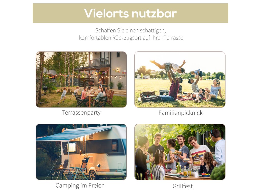 - ✔ Střecha z polyesteru odolného proti UV záření a vodě