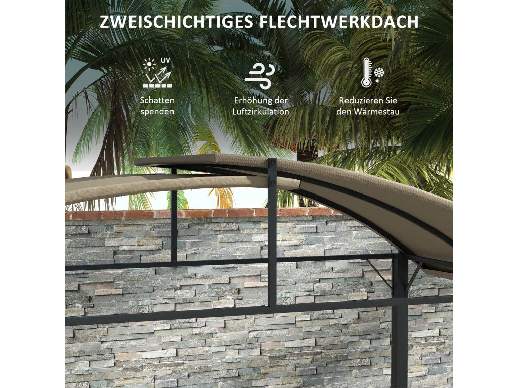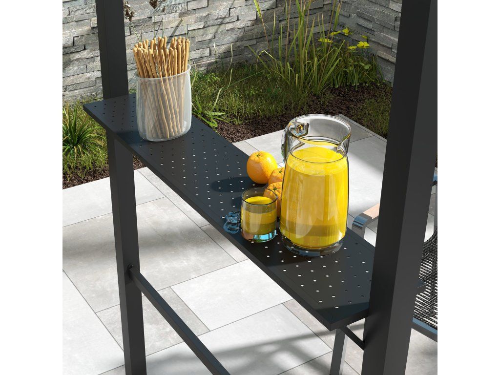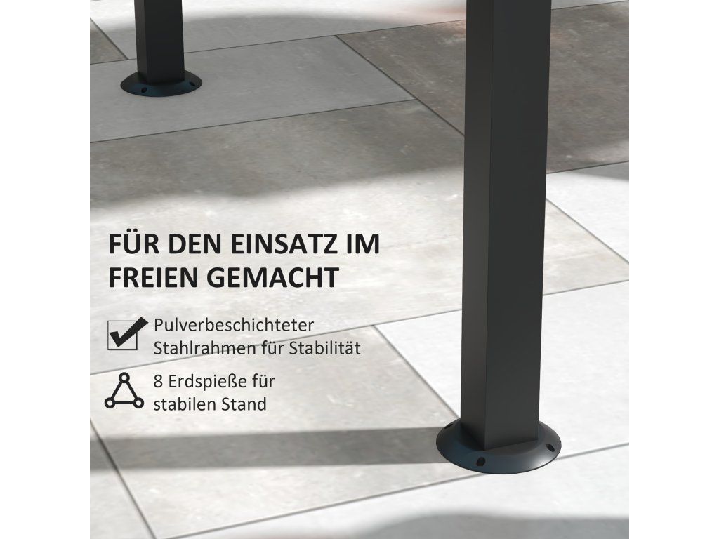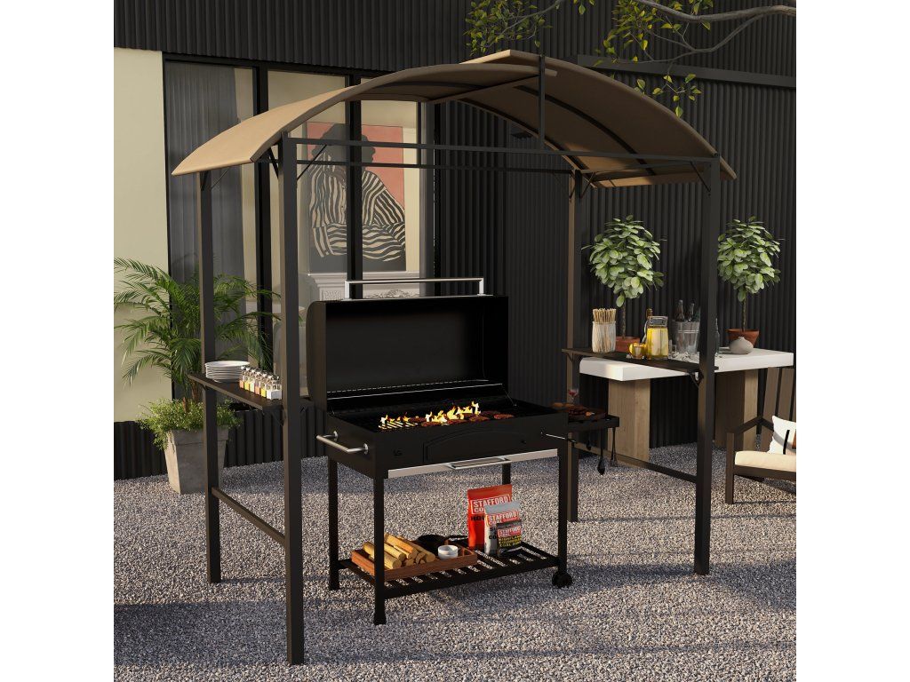Už nikdy si nenechte zkazit grilování nemilosrdným sluncem! Objevte tento chytrý grilovací altán od společnosti Outsunny - vašeho nenahraditelného pomocníka při grilování: polyesterová střecha vás ochrání před sluncem, zatímco dvě boční police nabízejí dostatek prostoru pro talíře, koření a další grilovací náčiní. Posunuté střešní prvky umožňují volný únik kouře, zatímco vy zůstáváte bezpečně chráněni před UV zářením. Díky tomu se grilování stane potěšením ve stínu!