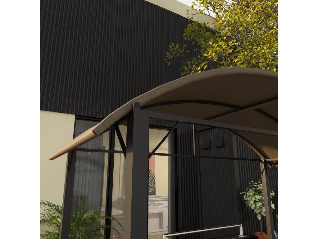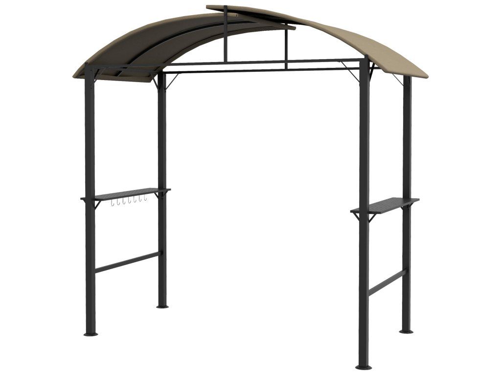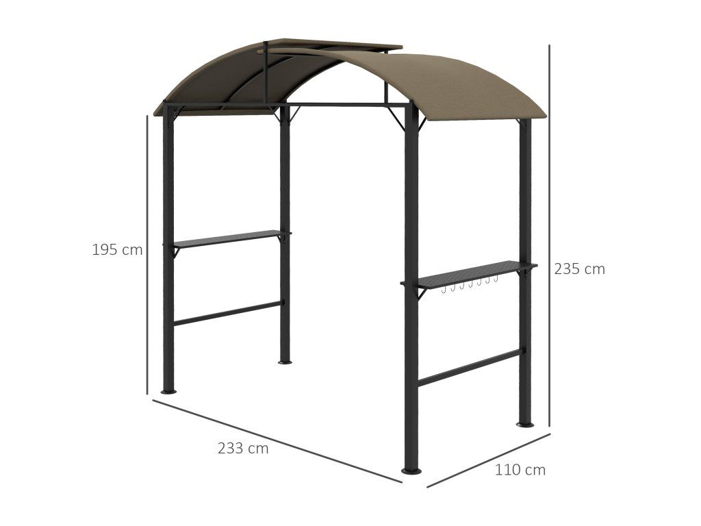 Outsunny BBQ altán na grilování 1,1 x 2,3 m odolný proti povětrnostním vlivům s polyesterovou střechou a bočními policemi pro grily do 100 cm ocel Khaki |