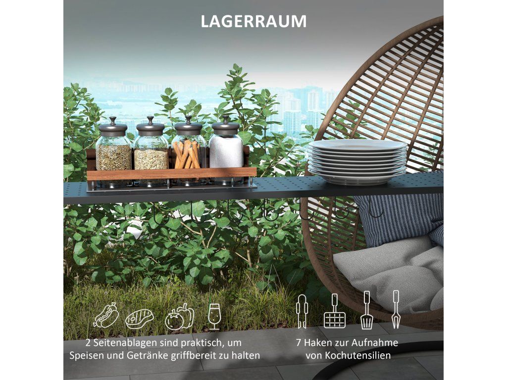 - ✔ 7 háčků umožňuje mít po ruce grilovací nářadí a vybavení