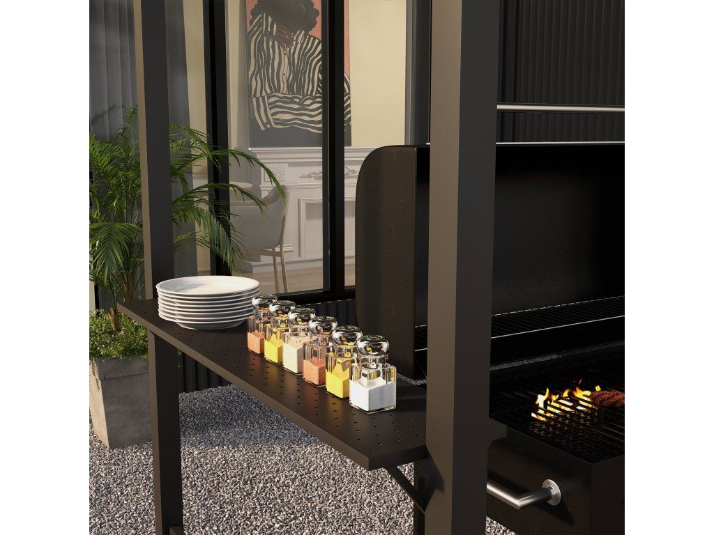- Boční police: Zde najdete dostatek prostoru pro kuchyňské náčiní, talíře a grilovací příslušenství, abyste se mohli pohodlně a komfortně věnovat své grilovací vášni