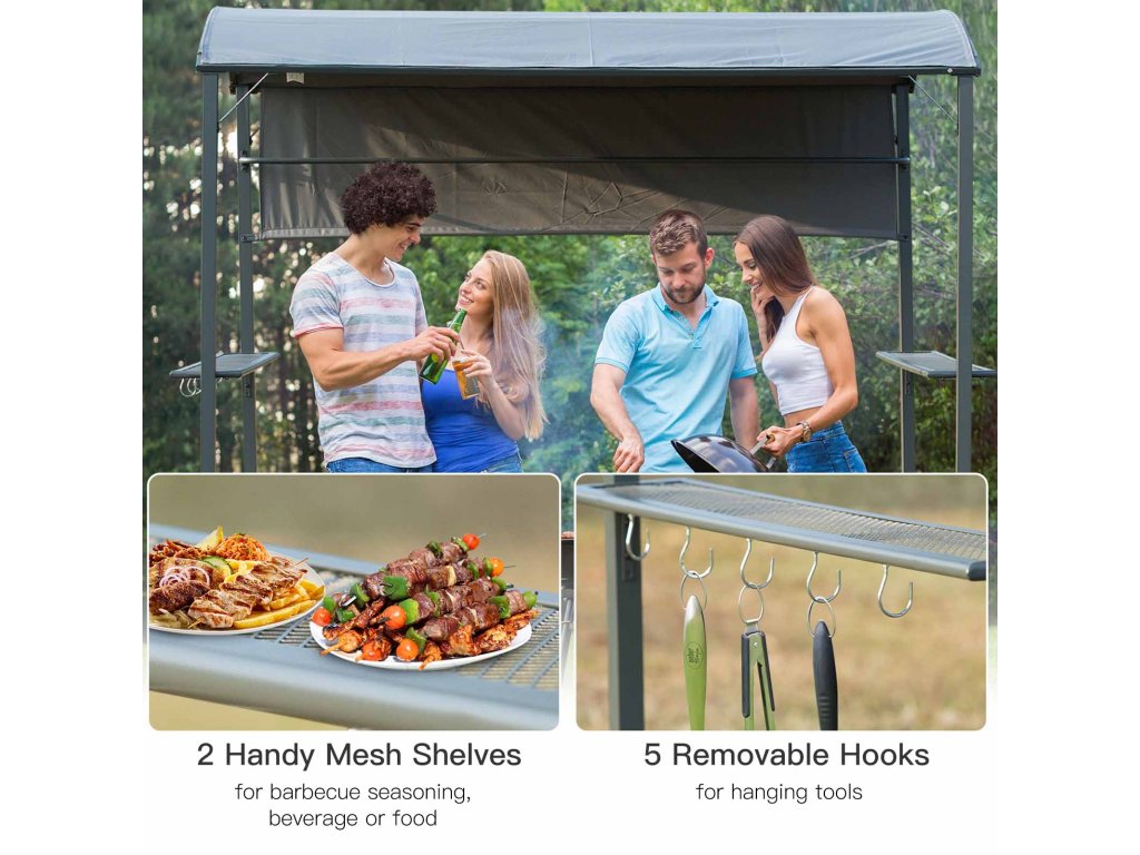 - Stylový: Stylová oblouková střecha s prvotřídním práškovým lakováním pro bezkonkurenční kvalitu. Ideální pro grilování, pikniky, večírky a posezení.