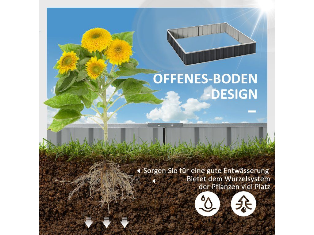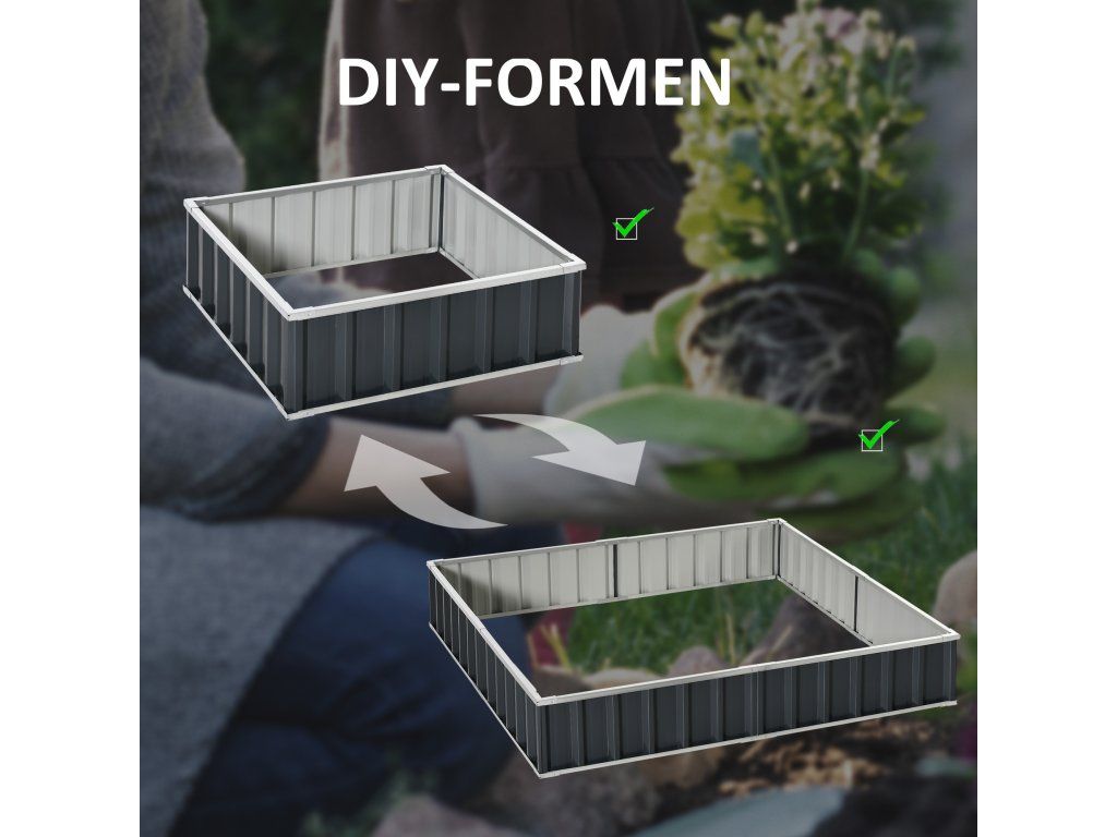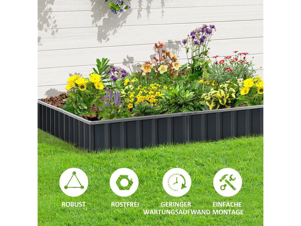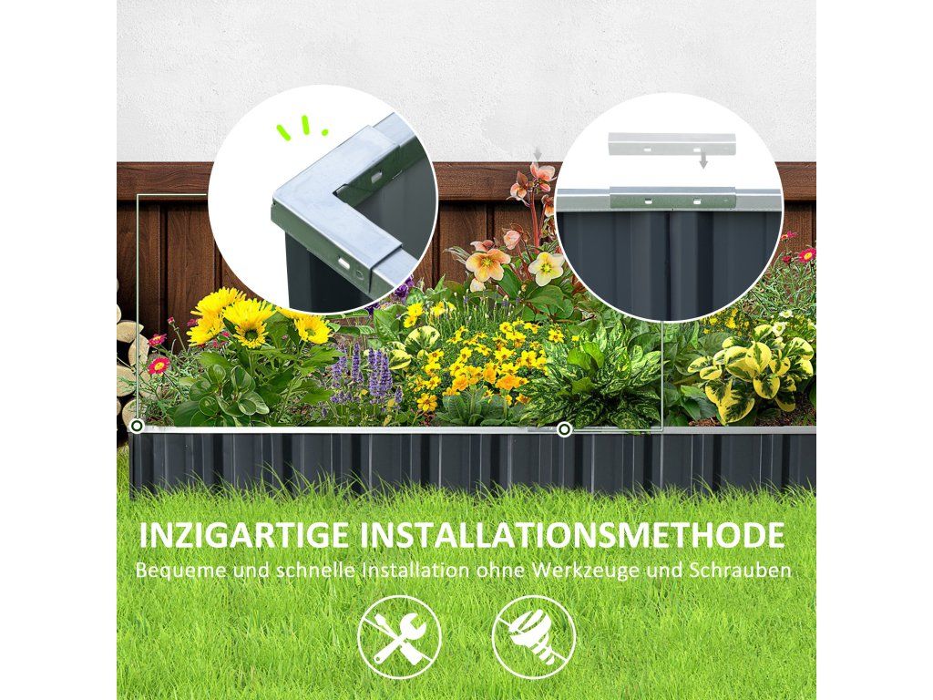 S tímto vyvýšeným zahradním záhonem od společnosti Outsunny můžete pěstovat své oblíbené rostliny, zeleninu, bylinky a mnoho dalšího. S naší bylinkovou zahrádkou snadno zabráníte prorůstání plevele do půdy, zabráníte zhutnění půdy a zajistíte dobrou drenáž. Vyvýšený zahradní záhon se hodí i do menších prostor, takže vám umožní zahradničit na místech, jako jsou terasy, vstupní prostory a verandy.