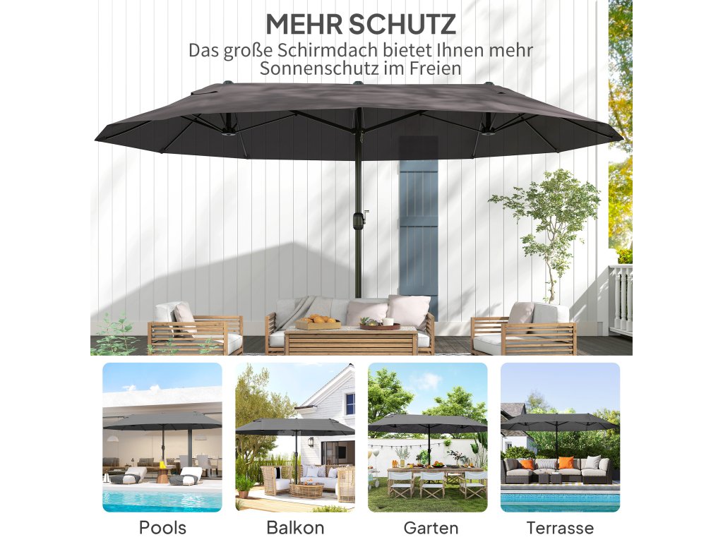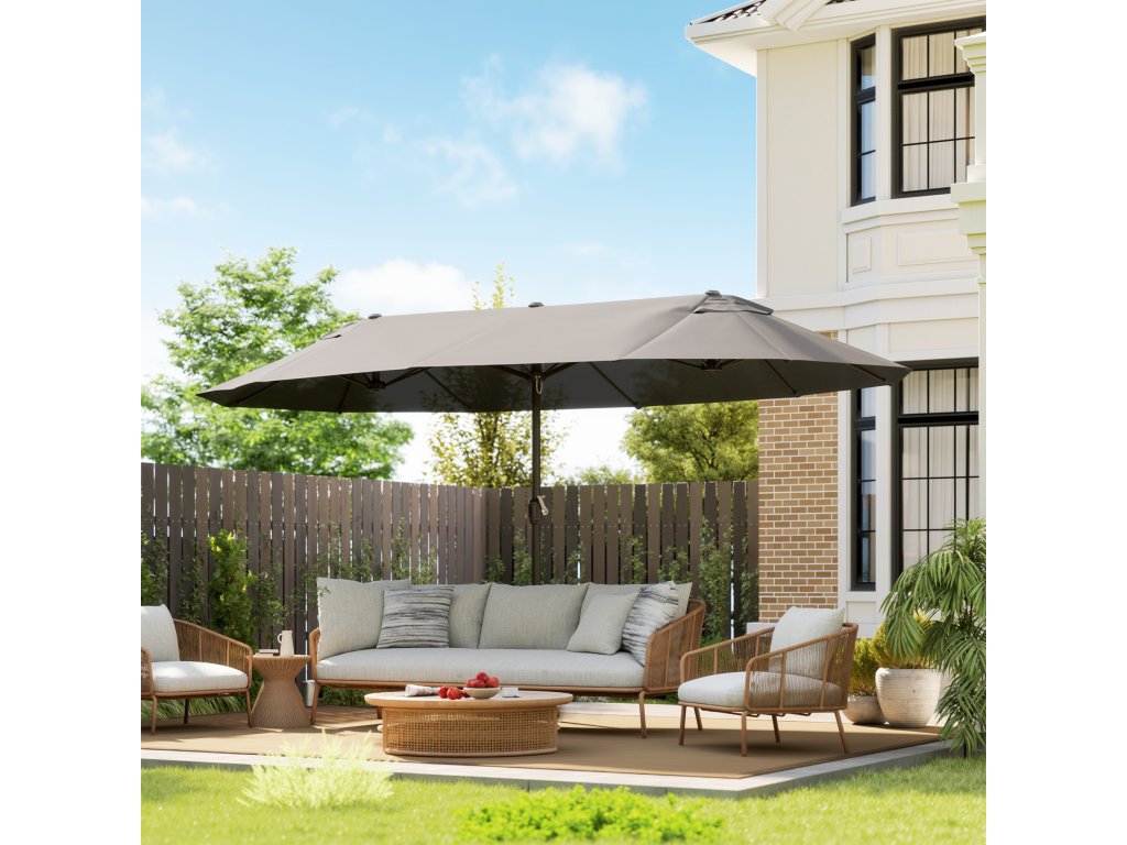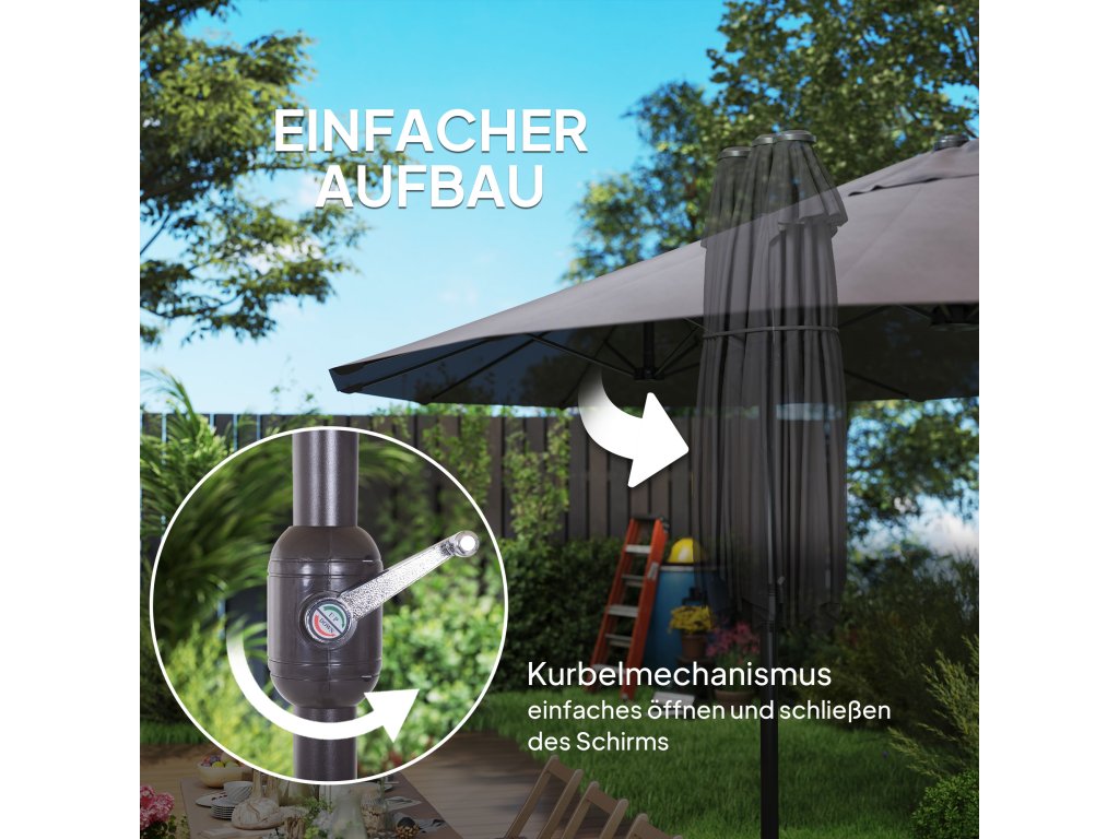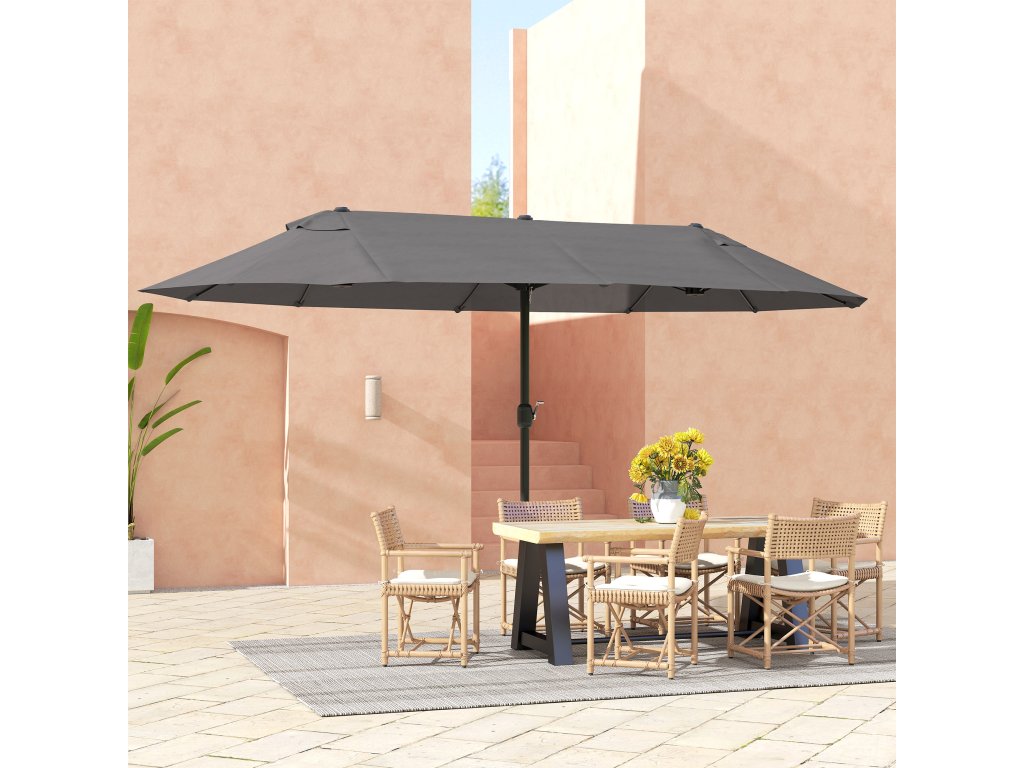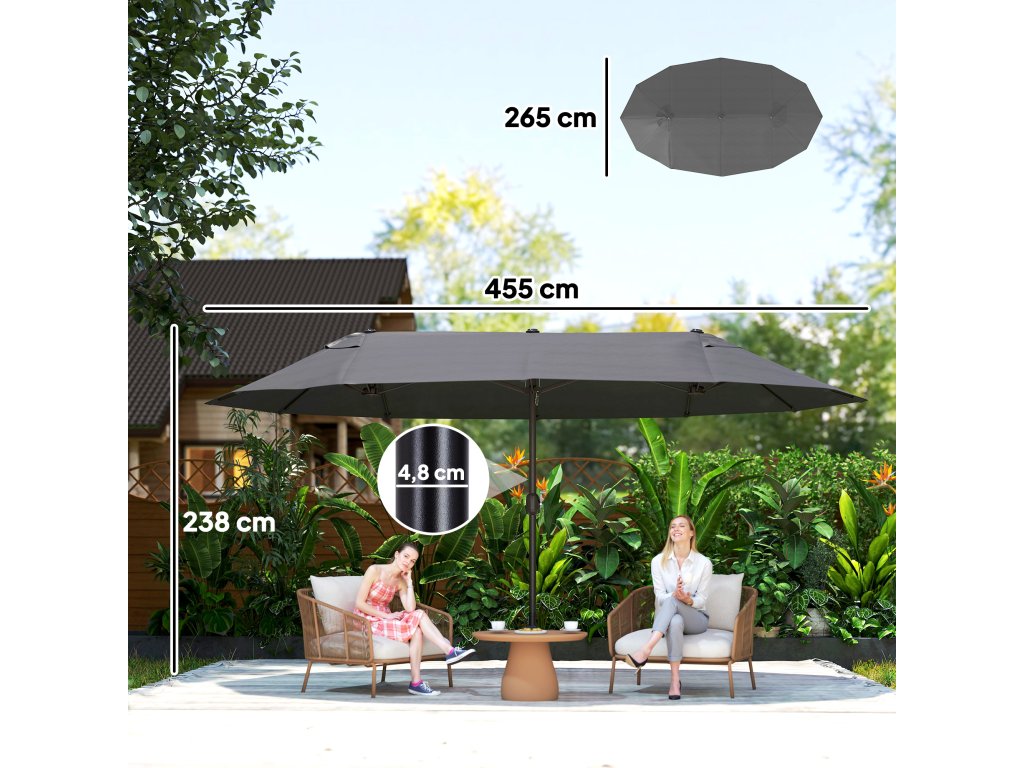 Outsunny dvojitý zahradní slunečník s ruční klikou, šedý, oválný, 460 x 270 x 240 cm| Aosom