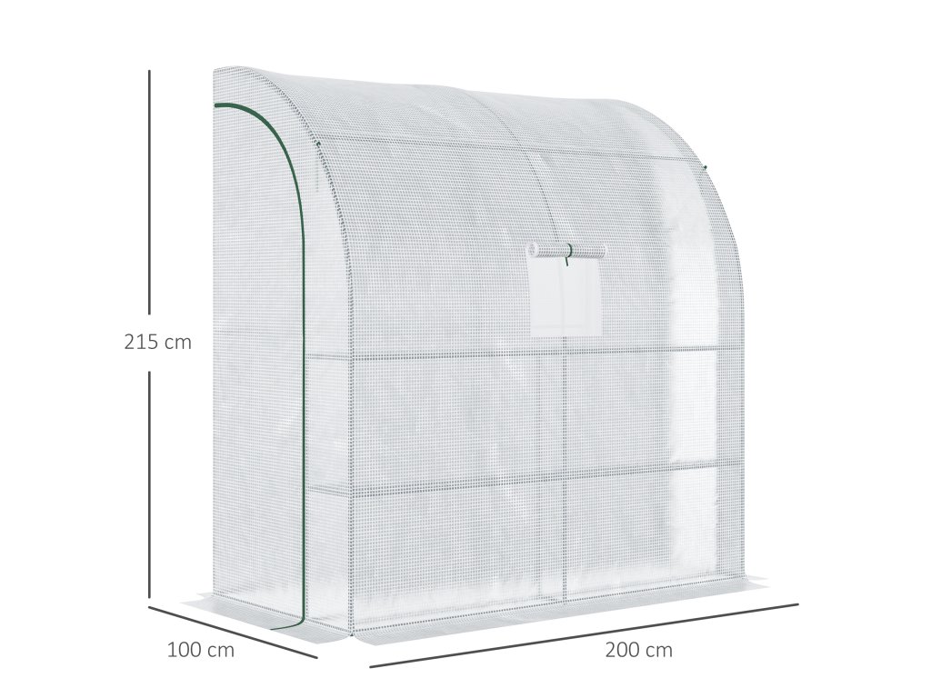 Outsunny fóliový skleník na rajčata 200x100x215cm s oknem ze síťoviny a rolovacími dveřmi UV ochrana v bílé barvě pro rostliny a zahradu