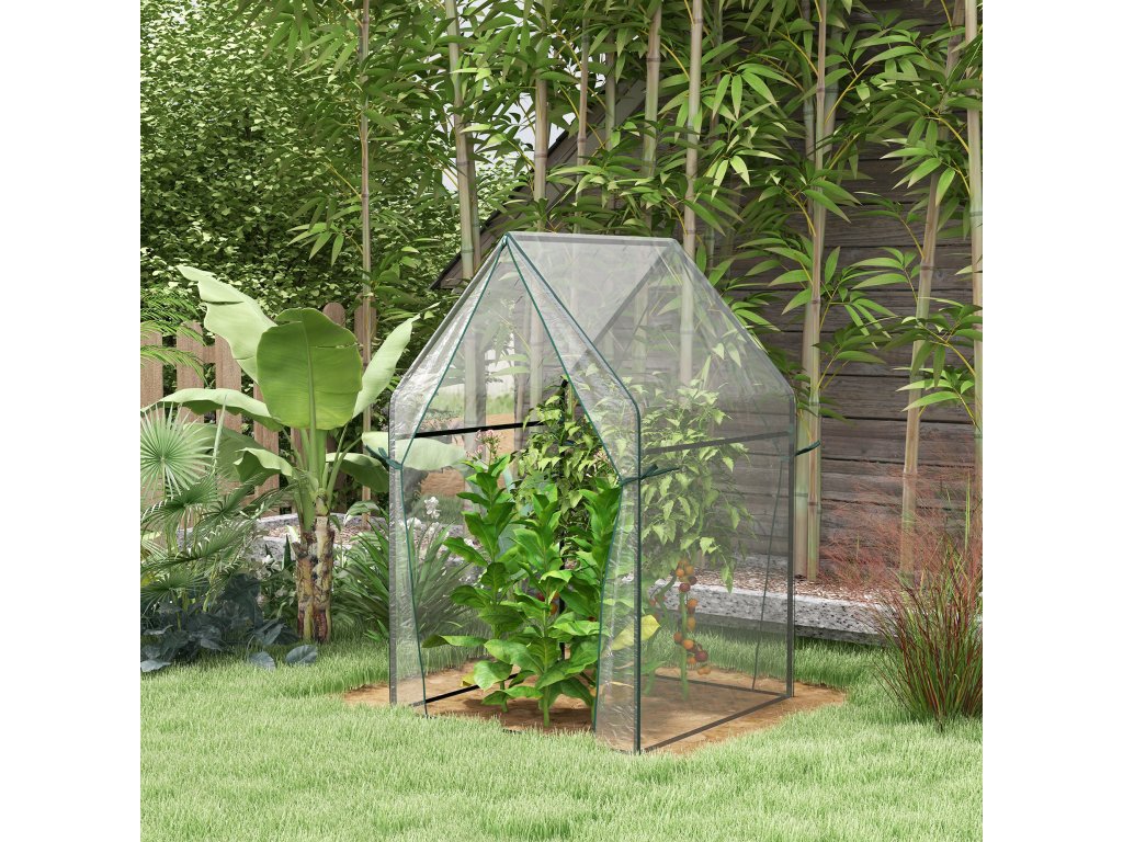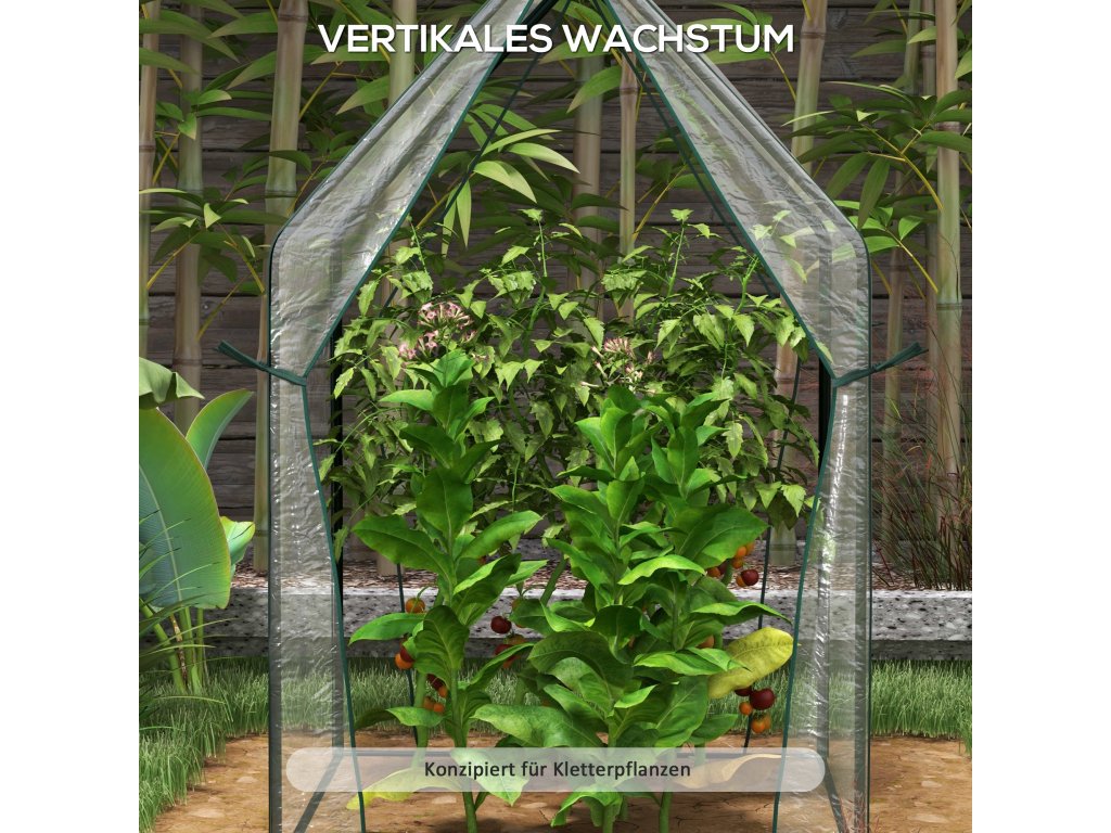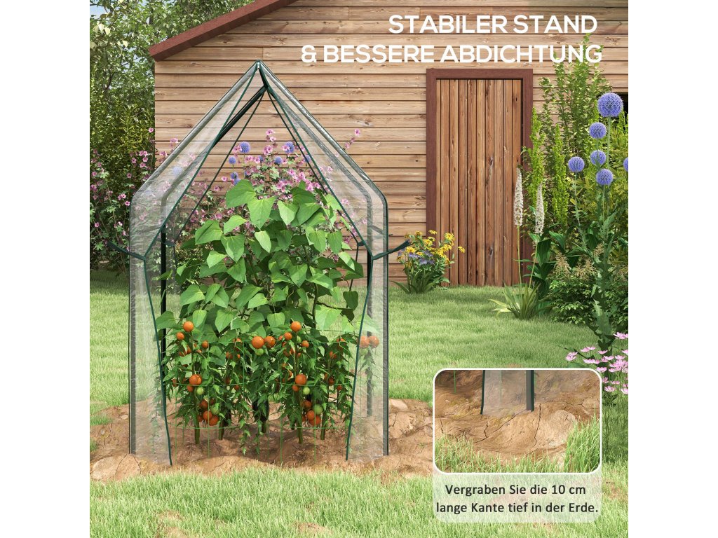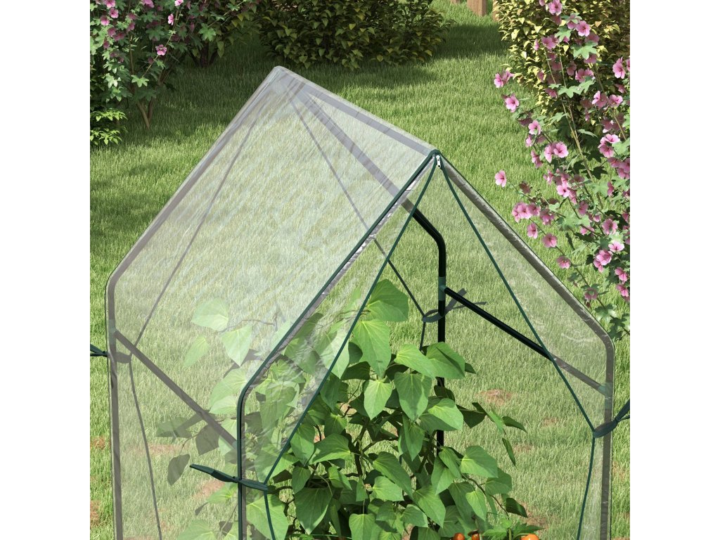 Už se nemusíte bát, že vaše pečlivě ošetřované rostliny a květiny zmrznou! Mini skleník od společnosti Outsunny nabízí zahrádkářům kompaktní, ale prostorné řešení. Vyžaduje méně než jeden metr čtvereční podlahové plochy a nabízí dostatek místa na výšku pro popínavé rostliny, jako jsou růže, okurky a rajčata. Plastový kryt odolný proti UV záření s dvířky na zip vytváří optimální teplotní a vlhkostní klima pro růst rostlin.