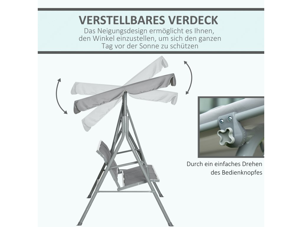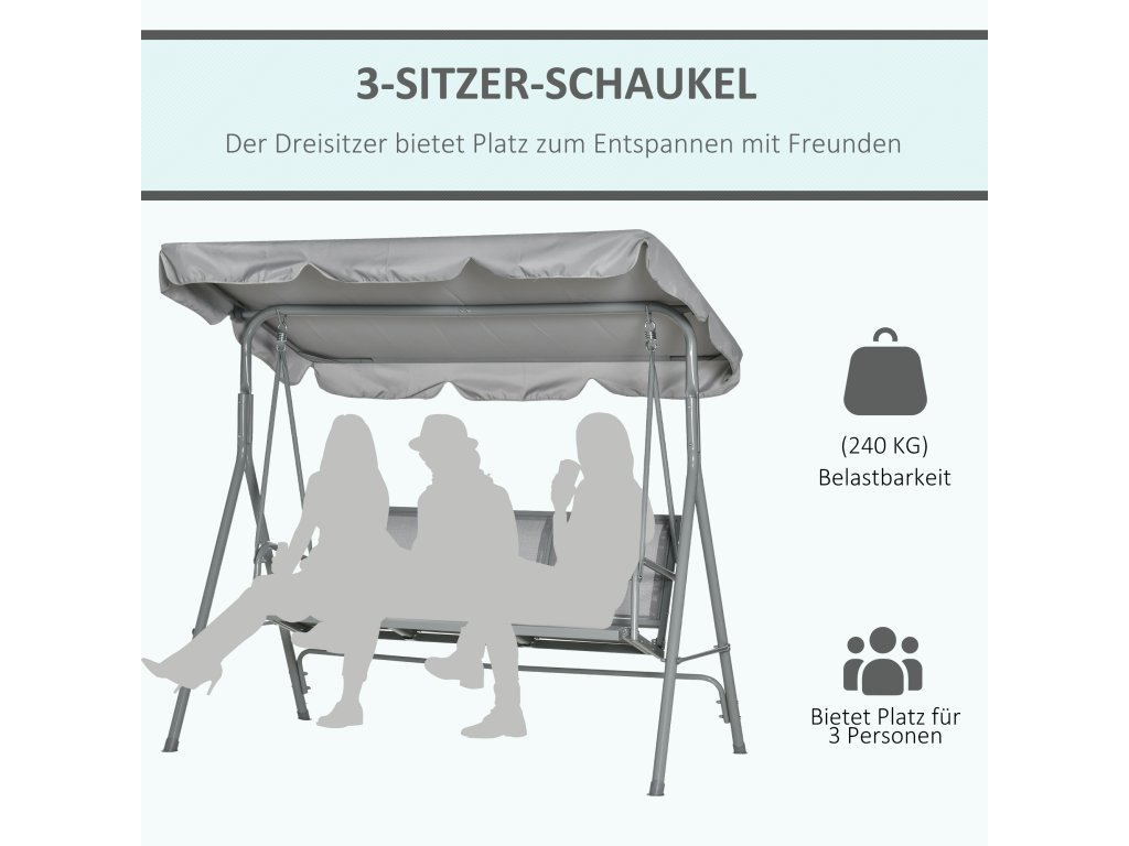 Outsunny Hollywood swing 3místná zahradní houpačka se stříškou, kovová šedostříbrná, 170x110x153 cm, ideální lehátko na zahradu a terasu | Aosom.de