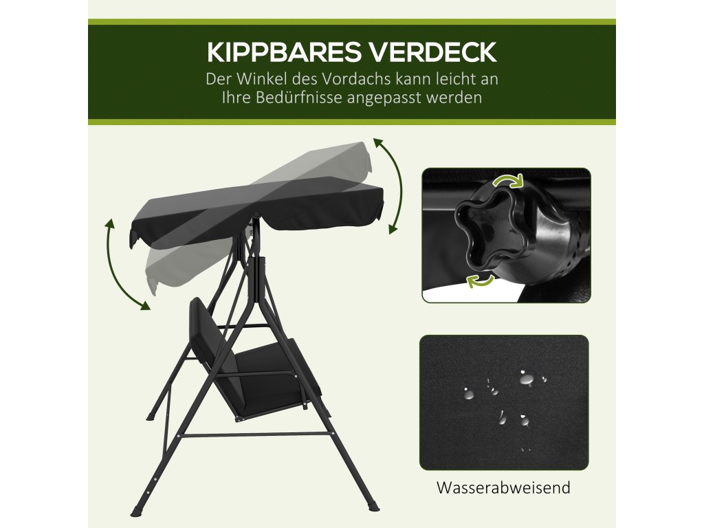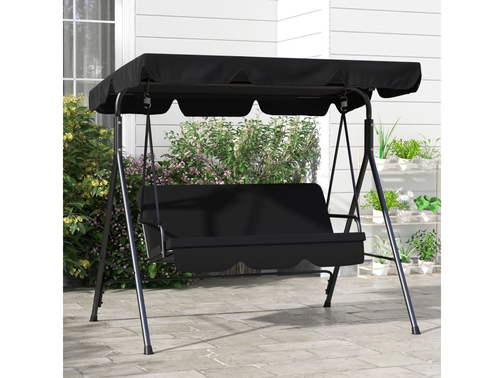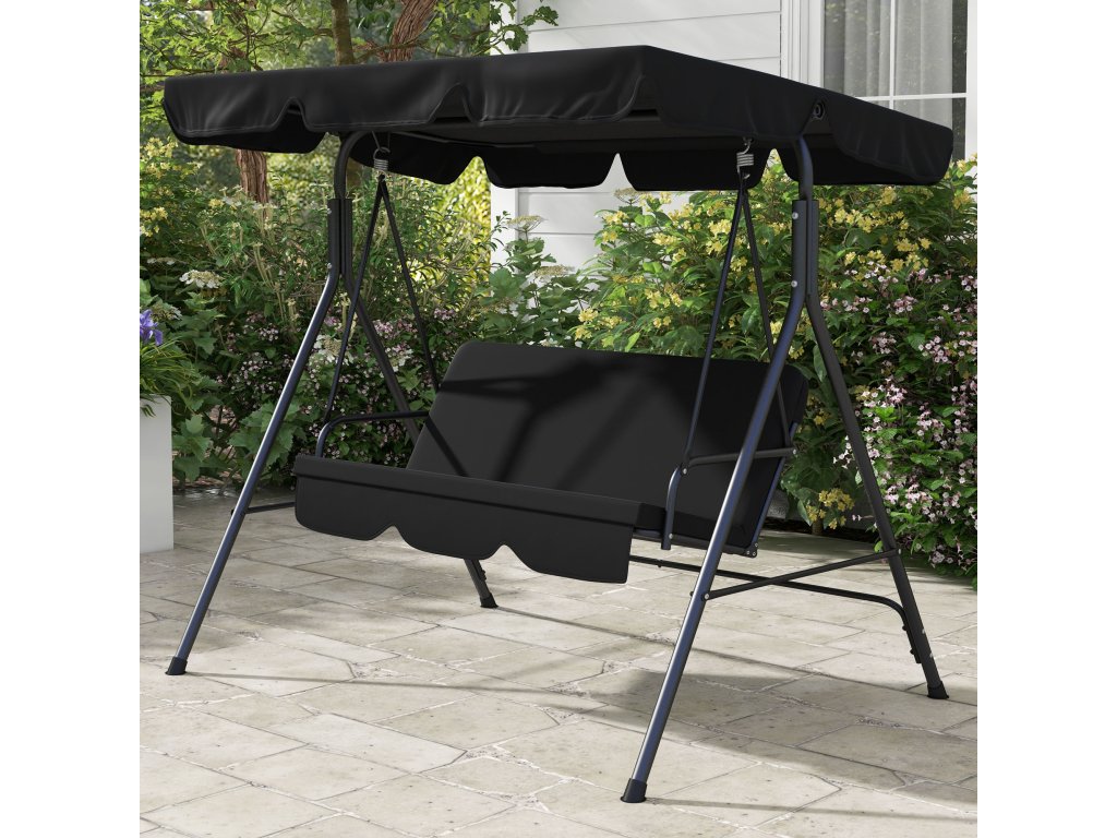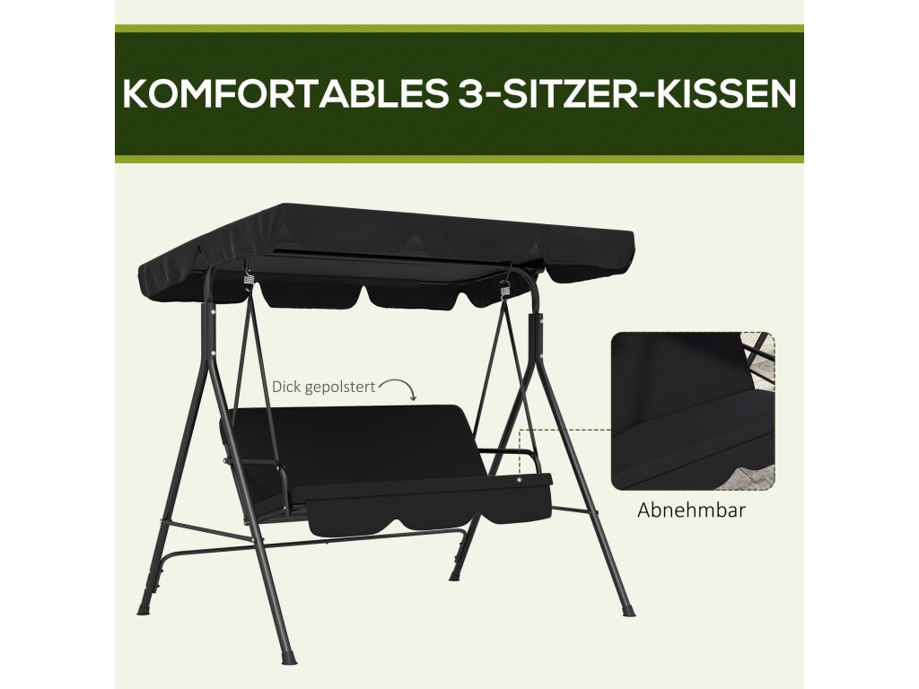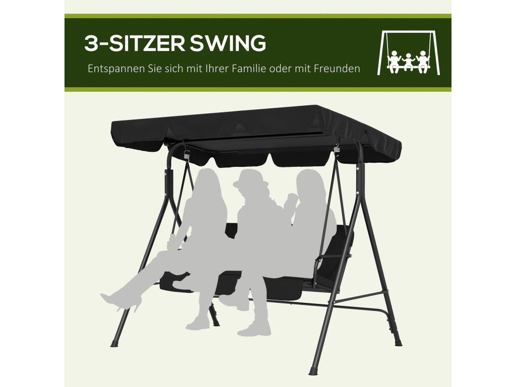 Outsunny Hollywood swing Třímístná zahradní houpačka s nastavitelnou střechou, robustní ocelová konstrukce, černá, 172 x 110 x 153 cm pro zahradu a terasu | Aosom.de