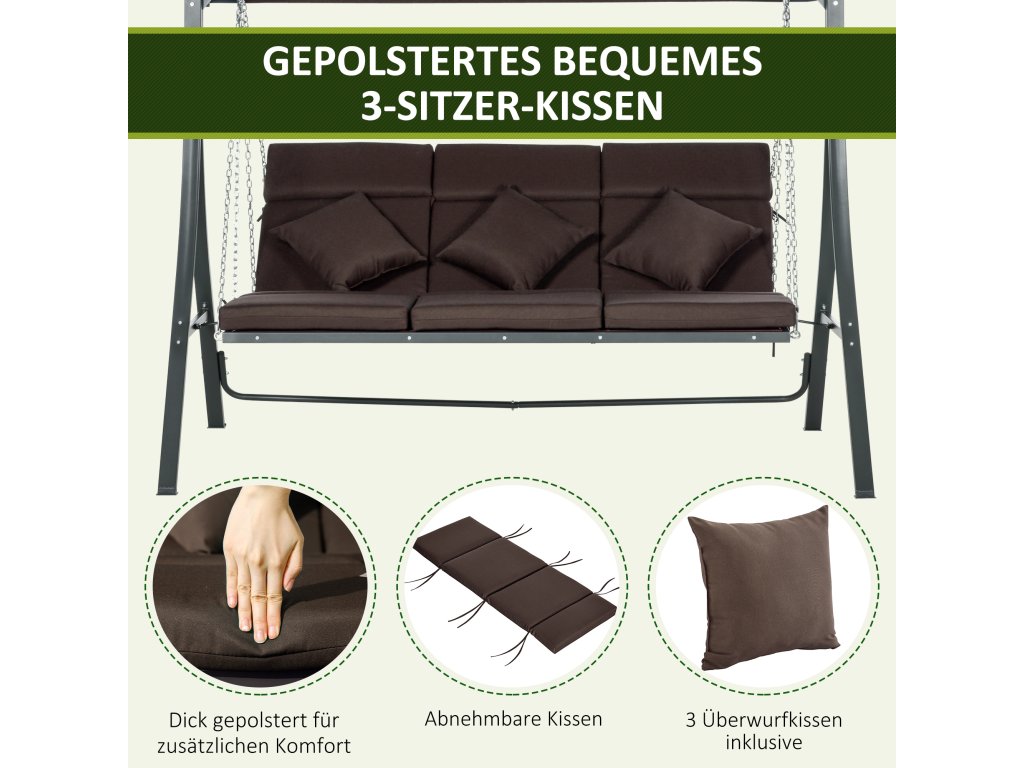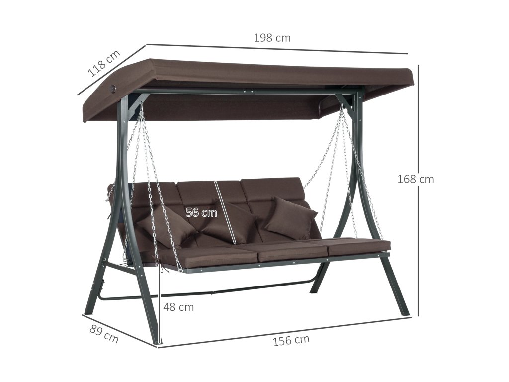 - Místo pro tři osoby: Tato prostorná zahradní houpačka nabízí dostatek místa pro tři osoby, které se mohou pohodlně houpat a odpočívat.