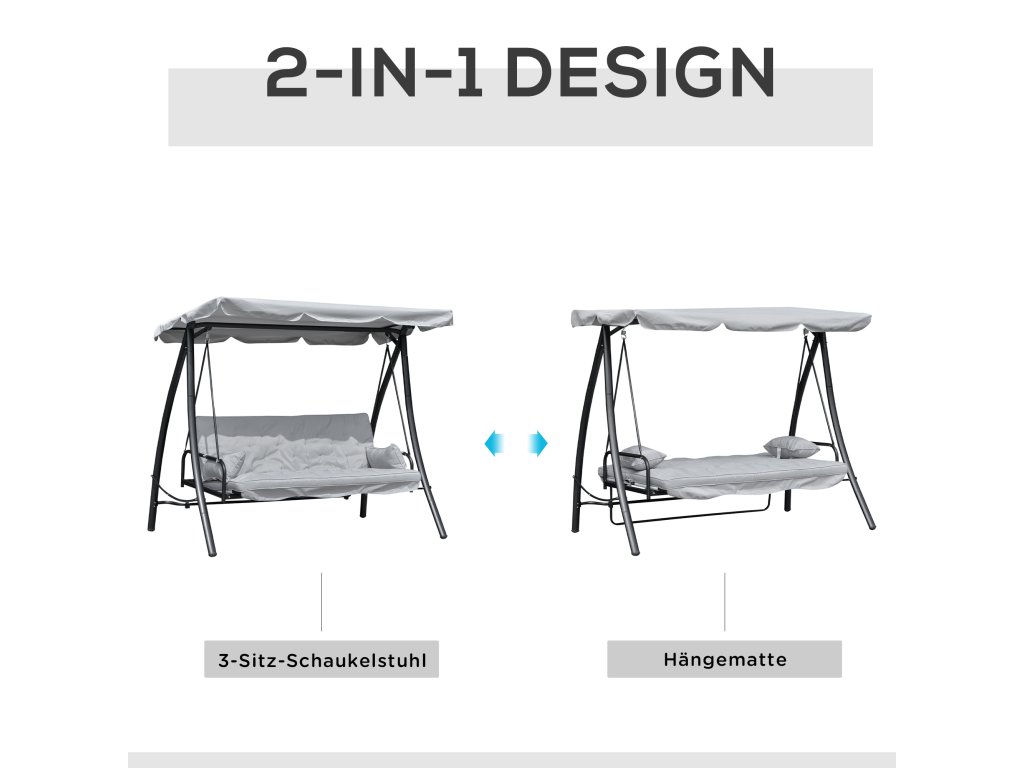 - Elegantní design: Vkusná hollywoodská houpačka s funkcí polohování až pro 3 osoby, ideální na zahradu, terasu nebo balkon.