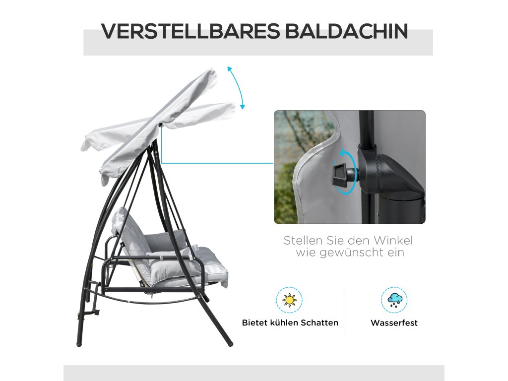 Opřete se a užívejte si slunečné hodiny na zahradě na naší hollywoodské houpačce s funkcí polohování od společnosti Outsunny. Houpací lavice nabízí místo až pro 3 osoby a prvotřídní komfort sezení díky silně polstrovanému sedáku a opěradlu. Rám je vyroben z robustního kovu a potah sedáku je z odolného polyesteru. Opěradlo je nastavitelné, takže lavici lze snadno přeměnit na houpací lehátko.