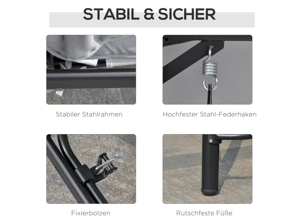 - Funkce polohování: Houpačka Hollywood má nastavitelné opěradlo, takže tuto houpací lavici můžete používat také jako houpací lehátko a užívat si ideálního pohodlí při polohování.
