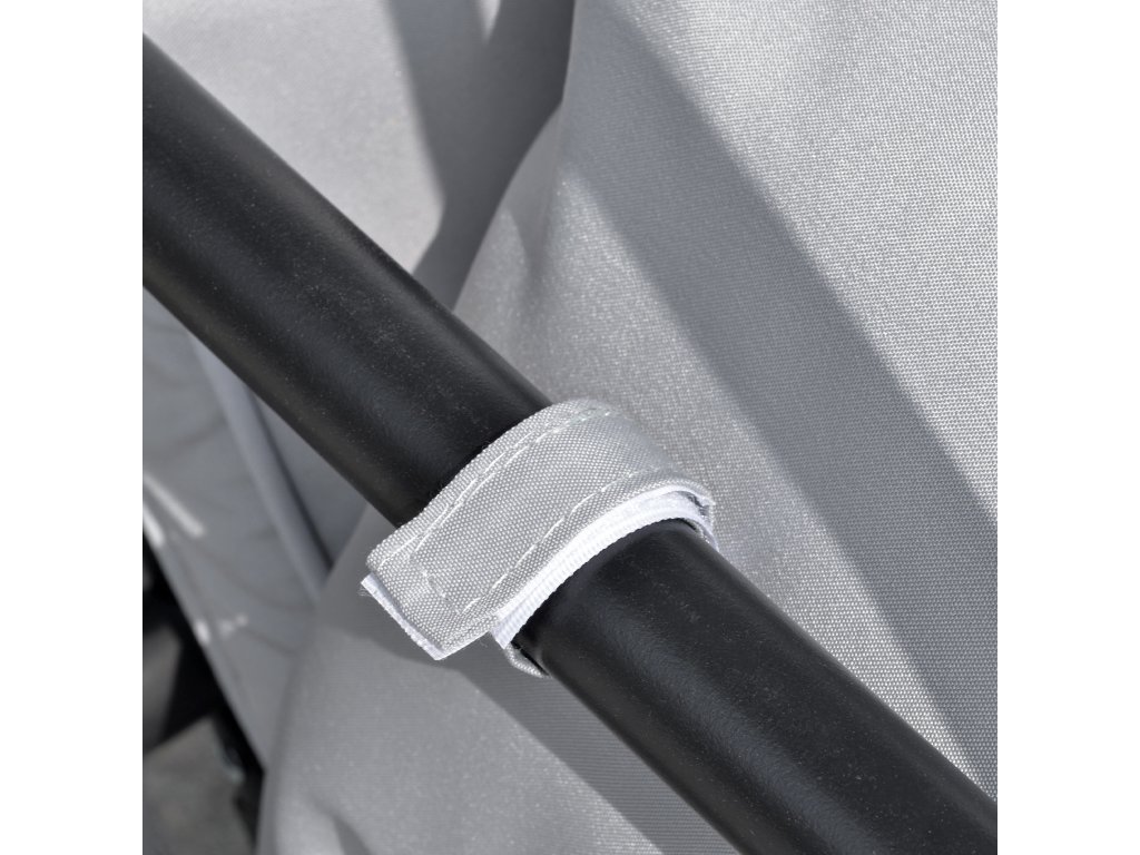 - ✔ Výklopná nastavitelná střecha z vodoodpudivého polyesteru o hmotnosti 180 g/m² poskytuje dostatečnou ochranu před sluncem