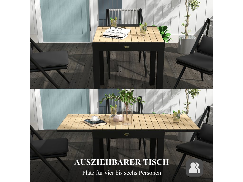 - Rozkládací deska stolu: S tímto rozkládacím venkovním jídelním stolem si můžete užívat pohodlí venkovního stolování. Náš stůl se bez námahy promění ve velký zahradní stůl. Během okamžiku se na něj vejde 6 hostů