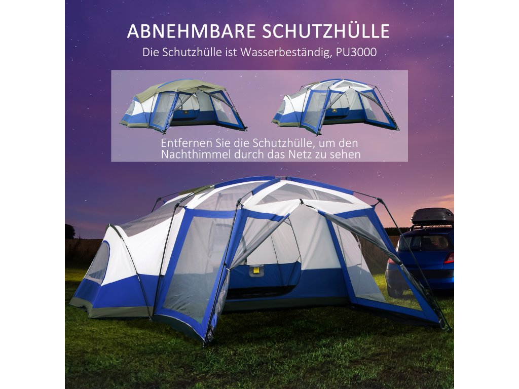 Outsunny kempinkový stan pro 6-8 osob rodinný stan s předsíňkou a 2 okny kopulový stan PU3000mm modrý 518x487x237cm pro outdoorová dobrodružství | Aosom.de