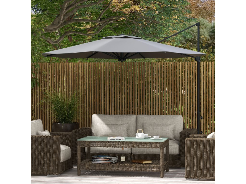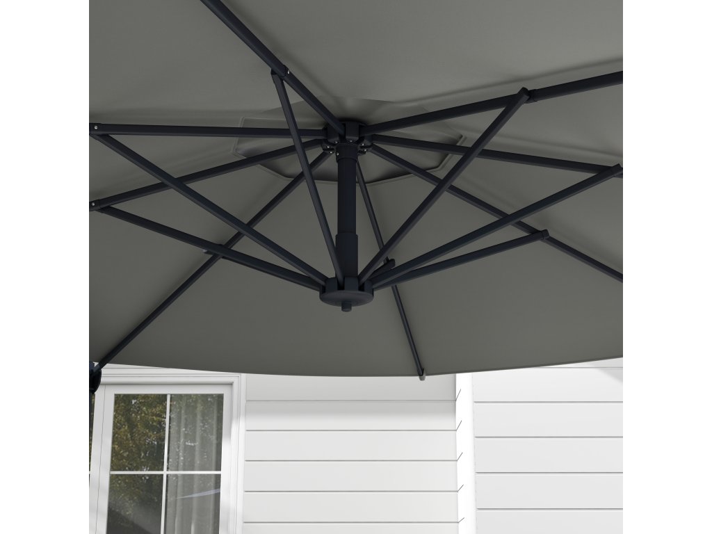 Ponořte se do sluncem zalitých dnů, chráněni naším konzolovým slunečníkem od společnosti Outsunny! S osmi robustními vzpěrami pro spolehlivou stabilitu nabízí nejen ochranu, ale také stylový vzhled. Díky klikovému mechanismu s plynulým chodem můžete bez námahy vytvořit dokonalou stinnou plochu. A když se slunce pohne, můžete slunečník na terase jednoduše otočit díky otočné tyči. Vytvořte si svůj vlastní malý stínový ráj - uprostřed vlastní zahrady!