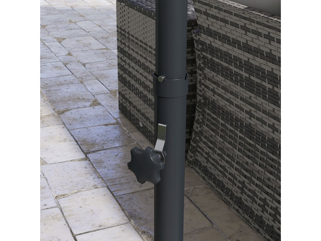 - Rozměry výrobku: Ø2,94 x 2,42V m. Nutná montáž. POZNÁMKA: Vyžaduje hmotnost nejméně 80 kg, není zahrnuta v ceně. Vhodná závaží pro slunečníky od společnosti Outsunny: 84D-070, v případě potřeby kontaktujte zákaznický servis a získejte odkazy na produkty. Nepoužívejte zahradní slunečník za extrémního počasí (silný vítr, prudký déšť, sníh)