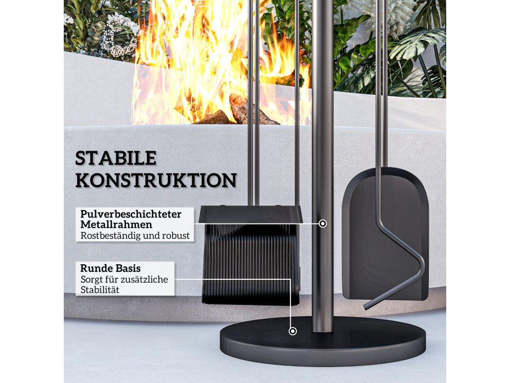 - ✔ Pětidílná sada obsahuje smetáček, lopatku, kleště, pohrabáč a robustní stojan