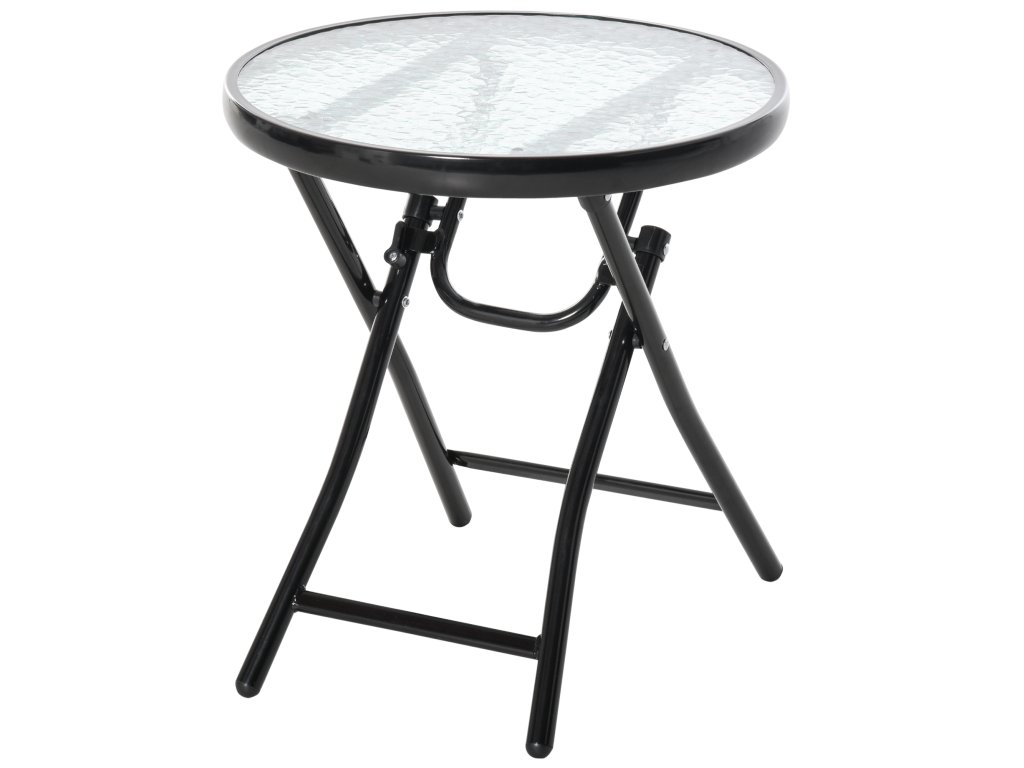 Outsunny kulatý odkládací stolek zahradní stolek se skleněnou deskou Ø45cm kovový černý na balkon a terasu | Aosom.de