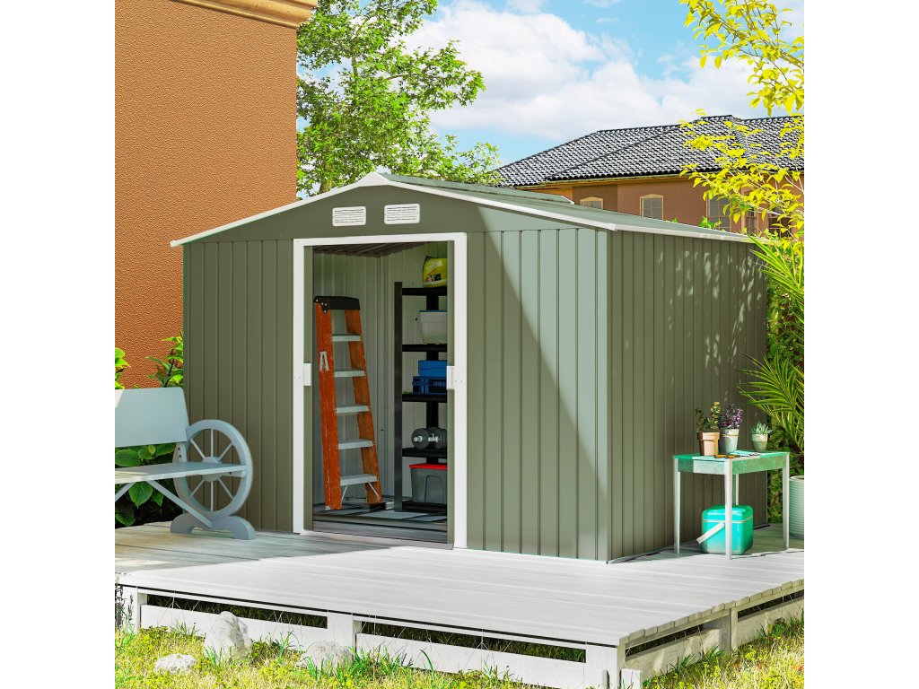 Outsunny kůlna na nářadí kovová kůlna s podezdívkou světle zelená 277 x 195 x 192 cm | Aosom