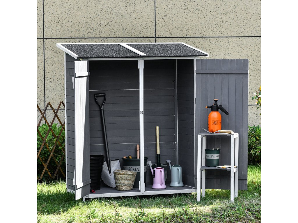 Outsunny kůlna na nářadí zahradní kůlna 2 dveře asfaltová střecha jedlové dřevo šedá+bílá 139x75x160cm | Aosom