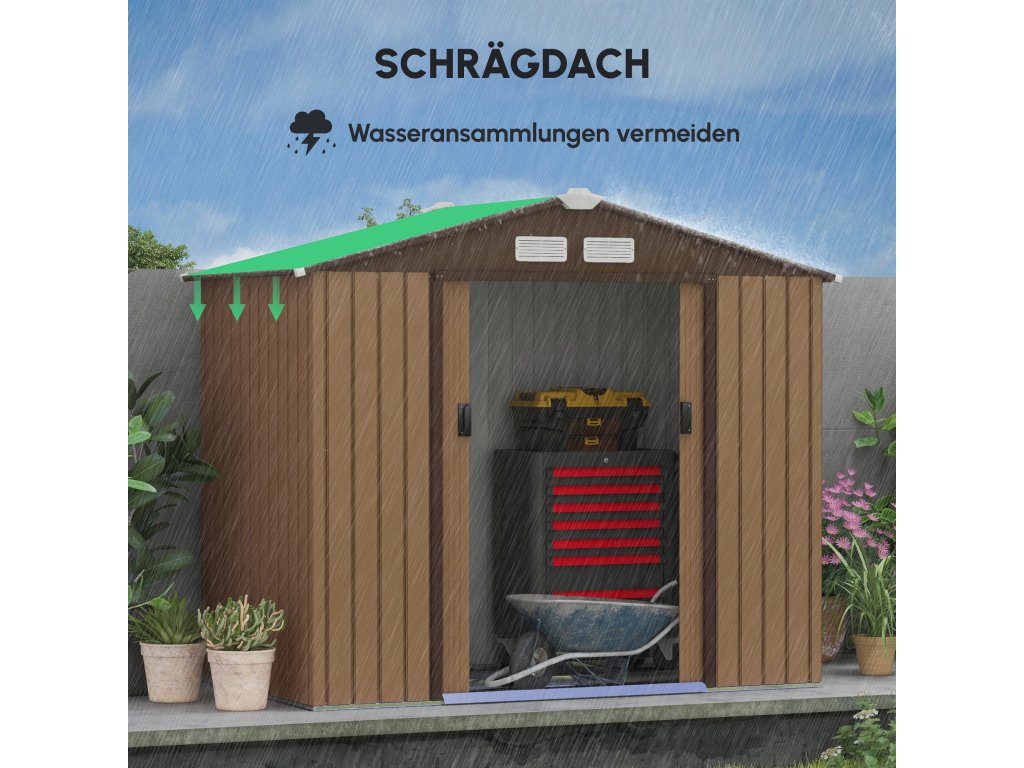 - kryt kůlny je vyroben z kovu - je mimořádně robustní, odolný vůči povětrnostním vlivům a nepropouští vodu