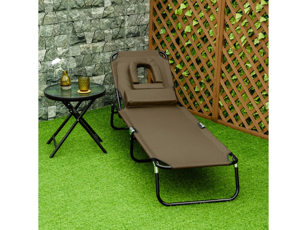 Outsunny lehátko na balkón, 1-St, 190L x 56W x 28H cm, zahradní lehátko s okénkem na čtení, skládací konstrukce, voděodolné, tkanina Oxford, hnědé| Aosom