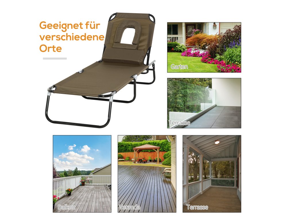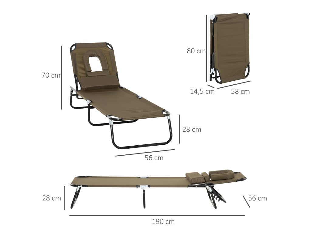 - DOPLŇKY: Toto skládací lehátko má jedinečný otvor na čtení a je vhodné do parků, zahrad, na terasy, k bazénům, do solárií, na pláže a další.
