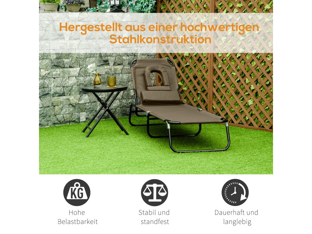 Naše skládací balkonové lehátko od společnosti Outsunny je skvělý produkt, který je vyroben z vysoce kvalitní oceli. Toto lehátko je ideální pro slunění, odpočinek nebo čtení na terase, v zimní zahradě, u bazénu nebo na zahradě. Opěradlo je nastavitelné do 4 poloh, aby vám poskytlo maximální pohodlí. S tímto zahradním lehátkem odolným proti povětrnostním vlivům si můžete číst svou oblíbenou knihu, aniž byste se vzdali luxusu naprosté relaxace na slunci.
