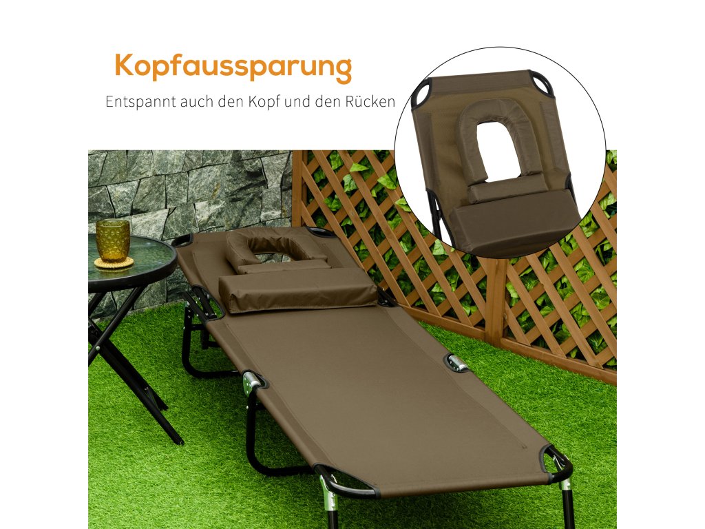 - POHODLÍ: Kempinkové lehátko má polstrovanou opěrku hlavy a zad se 4 polohami a jedinečným otvorem na čtení. Knihu jednoduše položíte na zem, aniž byste ji museli držet dole