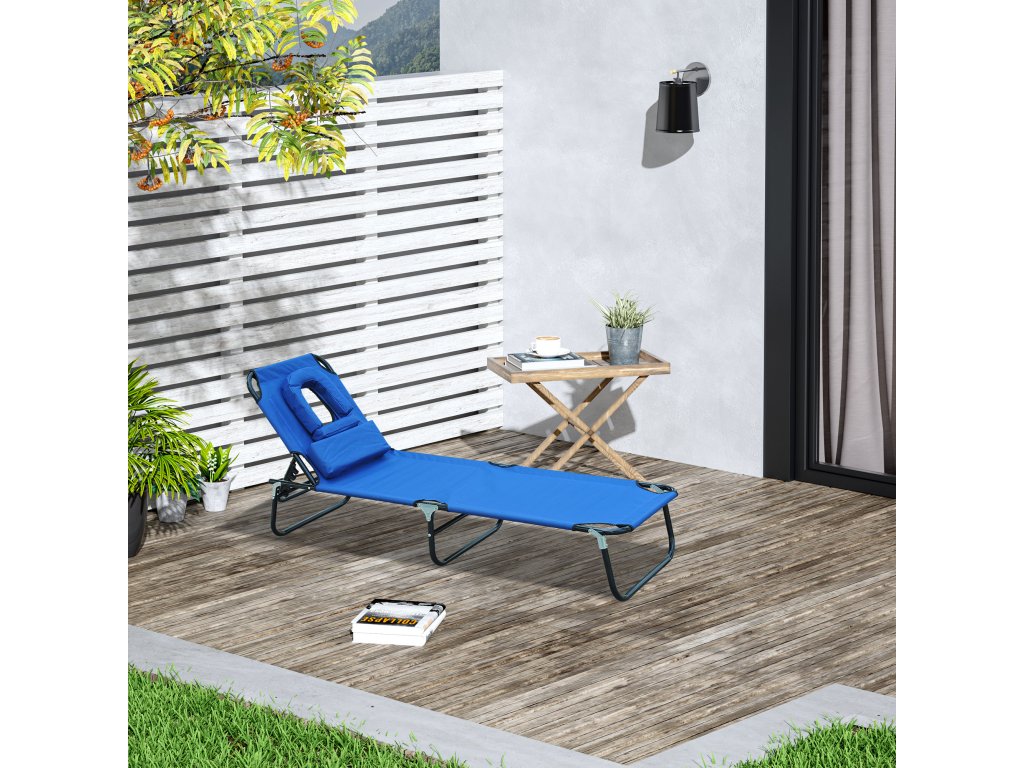 Outsunny lehátko zahradní relaxační lehátko třínohé lehátko s okénkem na čtení s otevíráním obličeje modré | Aosom