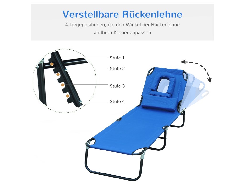 - DOPLŇKY: Toto skládací lehátko má jedinečný otvor na čtení a je vhodné do parků, zahrad, na terasy, k bazénům, do solárií, na pláže a další.