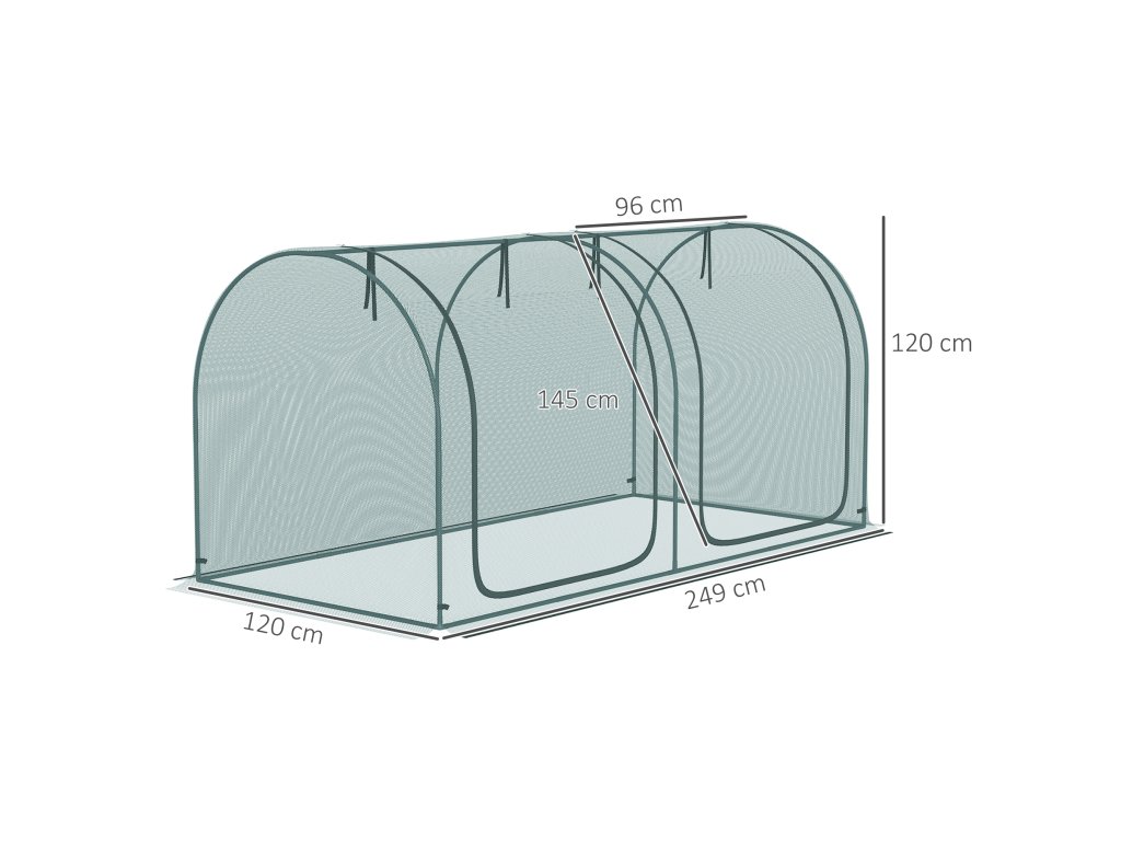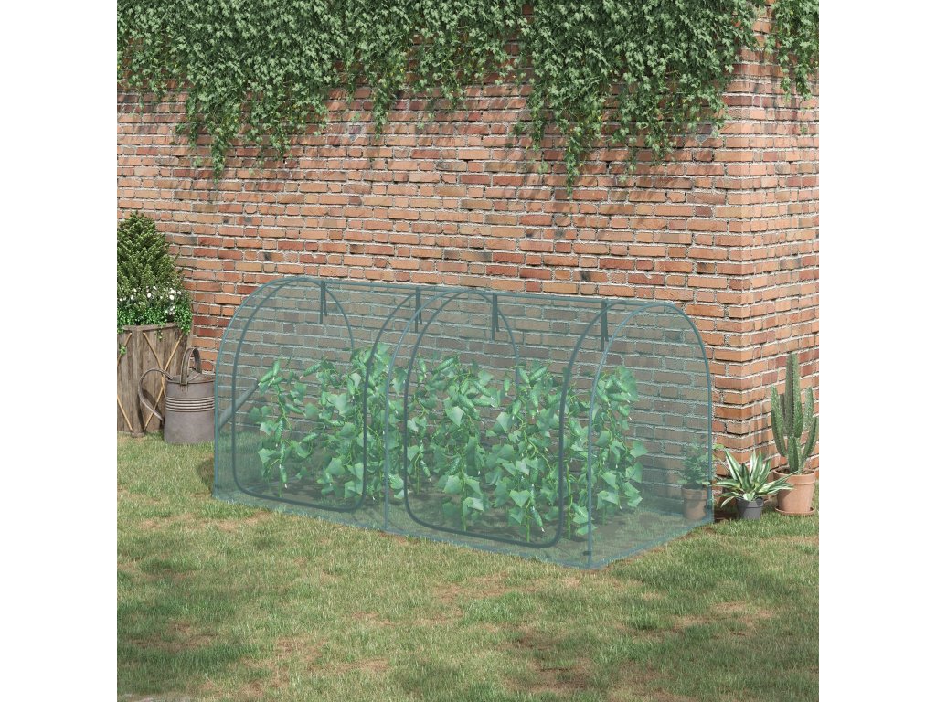 Outsunny mini skleník 2,49x1,2 m s dveřmi na ochranu rostlin na zahradu a balkon, ocelový rám a HDPE síť tmavě zelená | Aosom.de