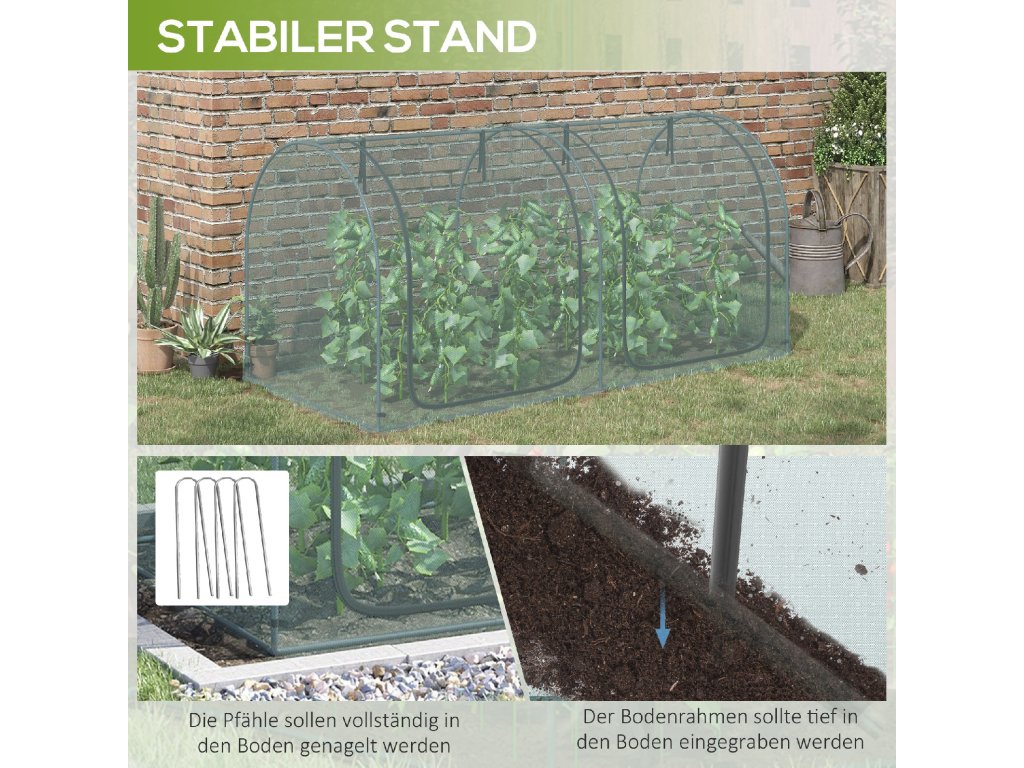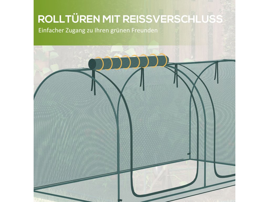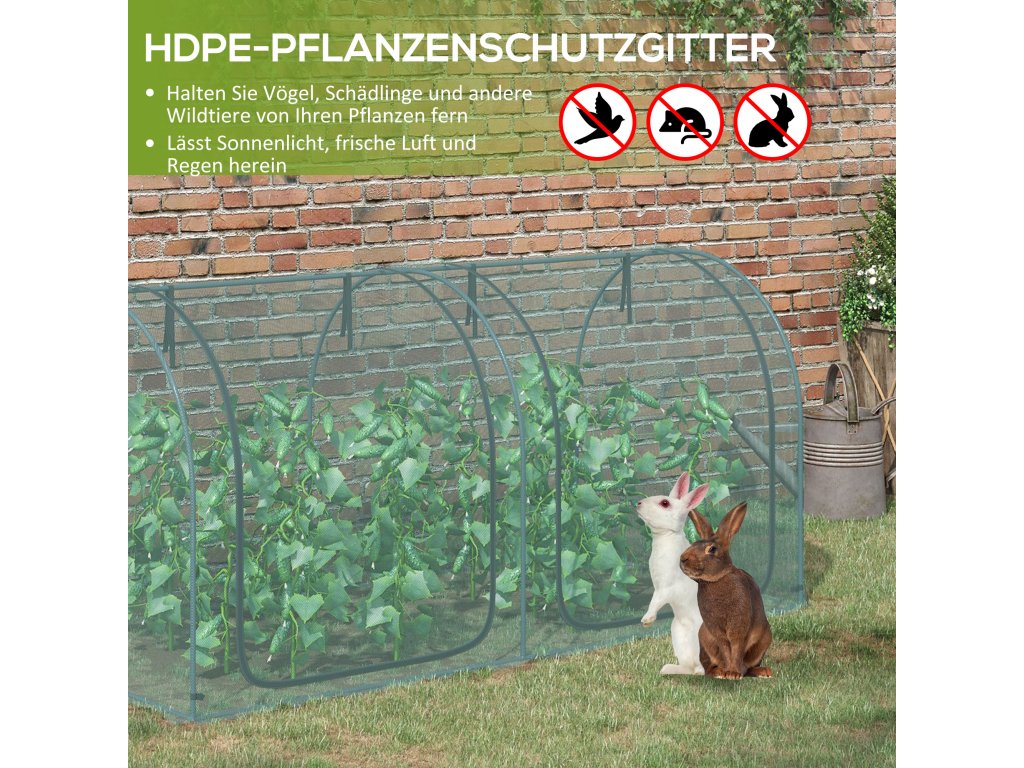 Pro milovníky zahrad, kteří hledají způsob, jak ochránit své rostliny, je tato ochranná síť na rostliny od společnosti Outsunny ideální! Síť chrání před ptáky a jinými živočichy a zároveň propouští přirozené světlo a vzduch. Velká dvířka lze navíc srolovat a zajistit pomocí popruhů. Ochrannou síť lze snadno postavit i sundat. Je ideálním řešením pro vytvoření bezpečného prostředí pro vaši zeleninu, ovoce, květiny nebo jiné rostliny.
