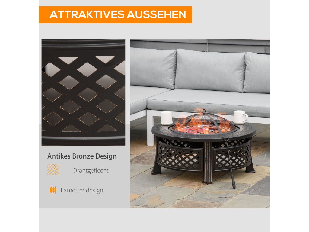 Vneste na svou terasu útulné teplo a atmosféru s naším praktickým a osobitým krbovým stolkem od společnosti Outsunny! Tento ohniště lze použít nejen jako zdroj tepla, ale také jako gril. Je vyrobeno z robustní oceli a bude vám spolehlivě sloužit po mnoho let. S touto ohnivou mísou můžete vkusně dotvořit venkovní prostředí - a to nejen esteticky!
